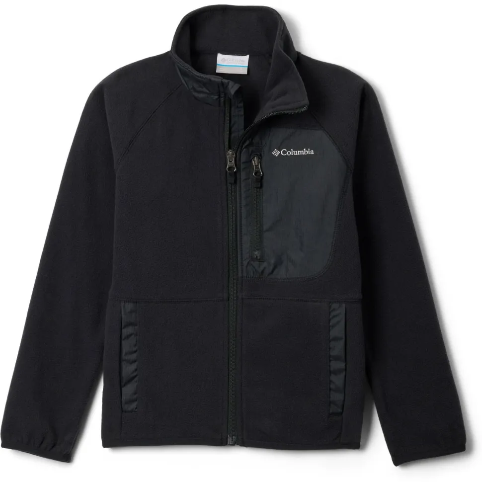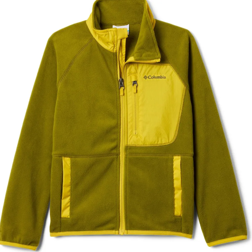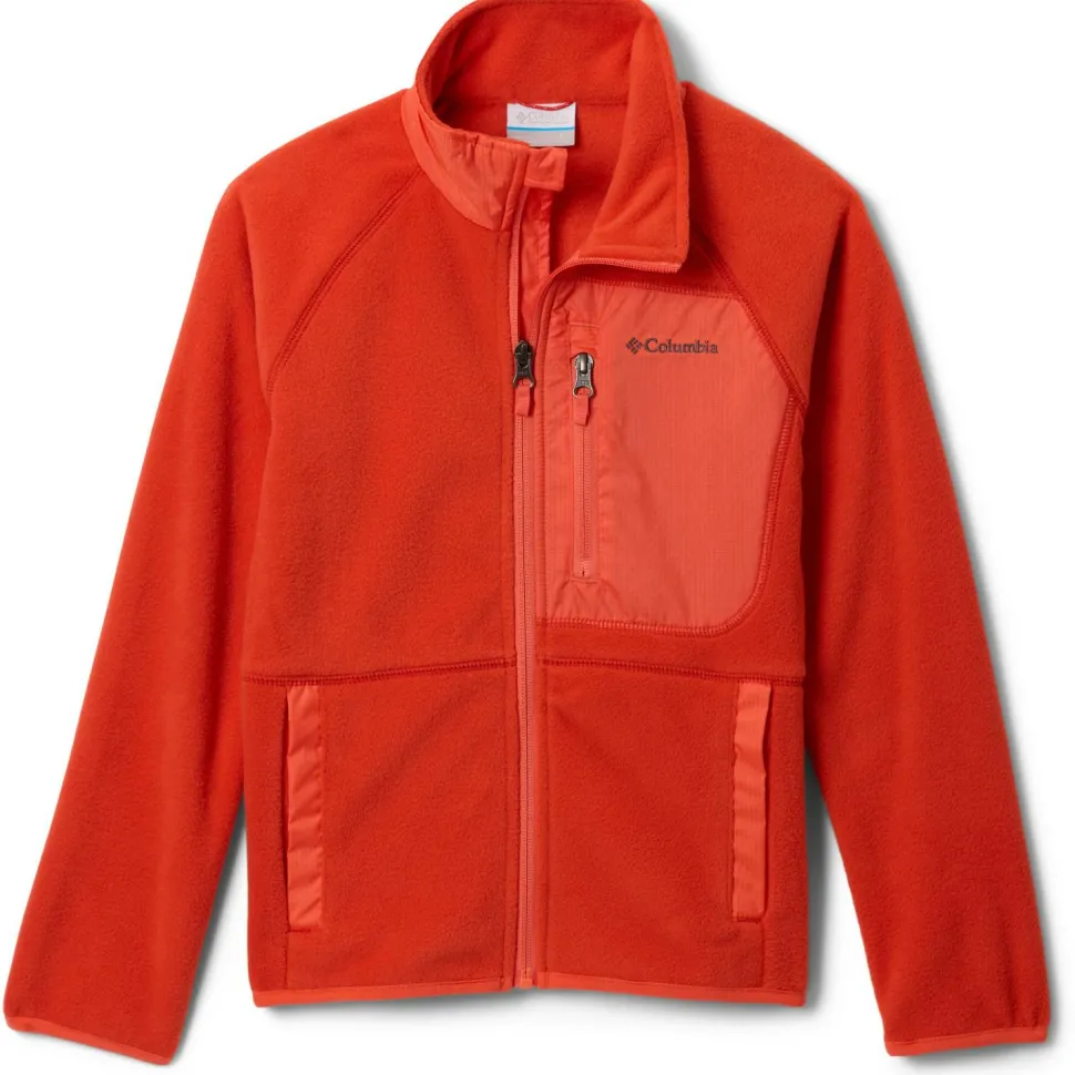 Die Kid’s Fast Trek V Full Zip Fleecejacke von Columbia kommt mit weichen und flauschigen Materialien daher und ist bereit für gemütliche Abende oder sportliche Wanderungen. Die atmungsaktiven Fasern befördern feuchte Luft schnell an die Oberfläche, wo sie verdunsten kann. Damit der empfindliche Halsbereich vor Wind und niedrigen Temperaturen geschützt wird, ist die Jacke mit einem Stehkragen ausgestattet.