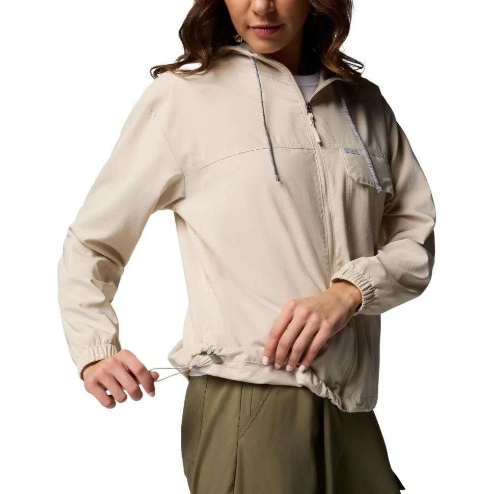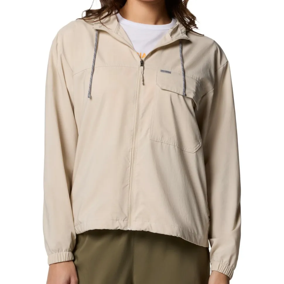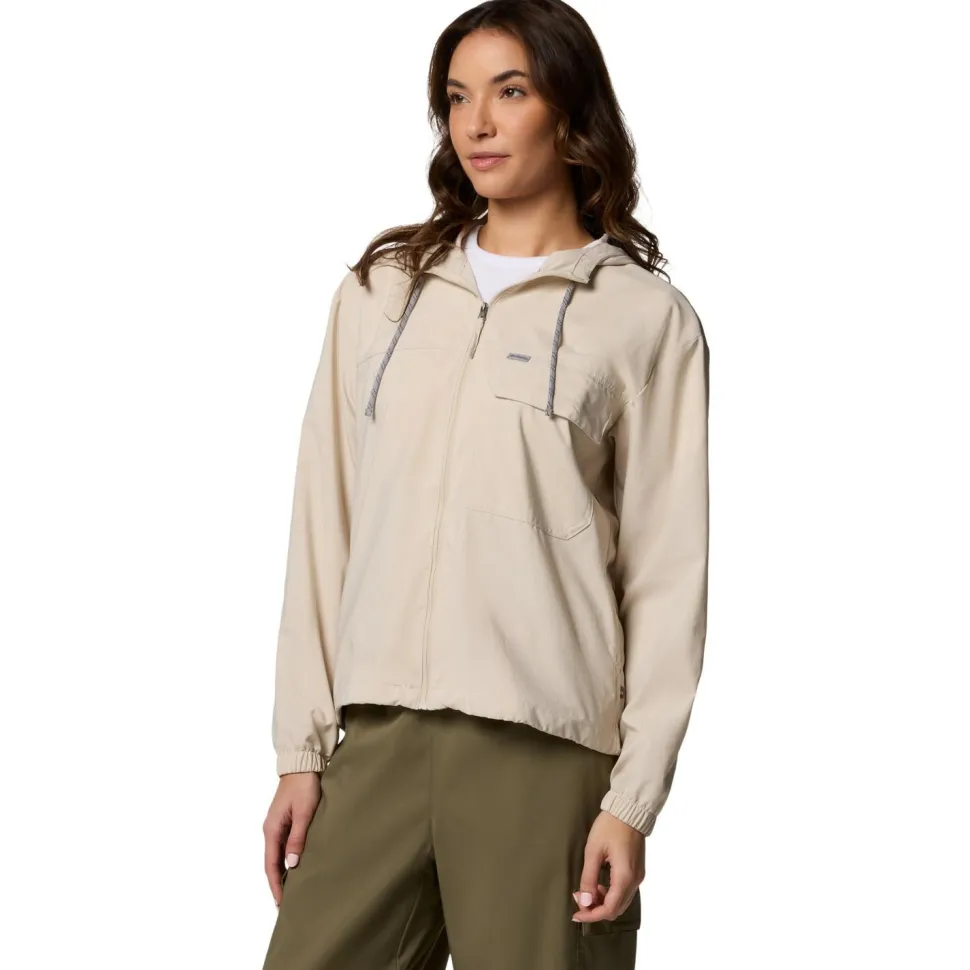 Mit Lichtschutzfaktor UPF 50 und integrierter Omni-Shade Technologie schützt die Women’s Skien Valley Hooded L/S Shirt Windjacke von Columbia zuverlässig vor Sonnenbrand. Mit Omni-Wick und recyceltem Polyester bietet der Windbreaker außerdem guten Windschutz. Das funktionelle Gewebe ist atmungsaktiv und trocknet zügig. Dank der Insect Shield Technologie schützt es zusätzlich vor Moskitos. Die Jacke ist mit elastischen Bündchen und elastischem Saum ausgestattet. Auch Jackensaum und Kapuze lassen sich bequem einstellen. Für angenehmen Luftaustausch stehen Ventilationsöffnungen am Rücken bereit.