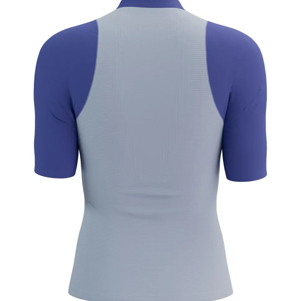 Das Women’s Trail Racing Postural S/S Top von Compressport eignet sich für schnelle Läufe in der Natur. Es ist atmungsaktiv und schnelltrocknend und schmiegt sich damit angenehm an Deinen Körper an. Das integrierte V zwischen den Schulterblättern gewährleistet eine schnelle Ableitung von überschüssigem Schweiß, damit Du auch bei steigendem Tempo trocken bleibst. Ein modernes Ärmeldesign vermeidet unerwünschte Irritationen beim Tragen eines Trail-Rucksacks. Der runde Halsausschnitt liegt flach und sanft auf Deiner Haut, bietet höchsten Komfort und ermöglicht einen bequemen Zugang zum durchgehenden, selbstschließenden Reißverschluss.