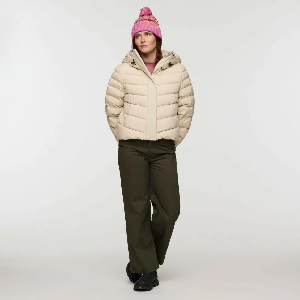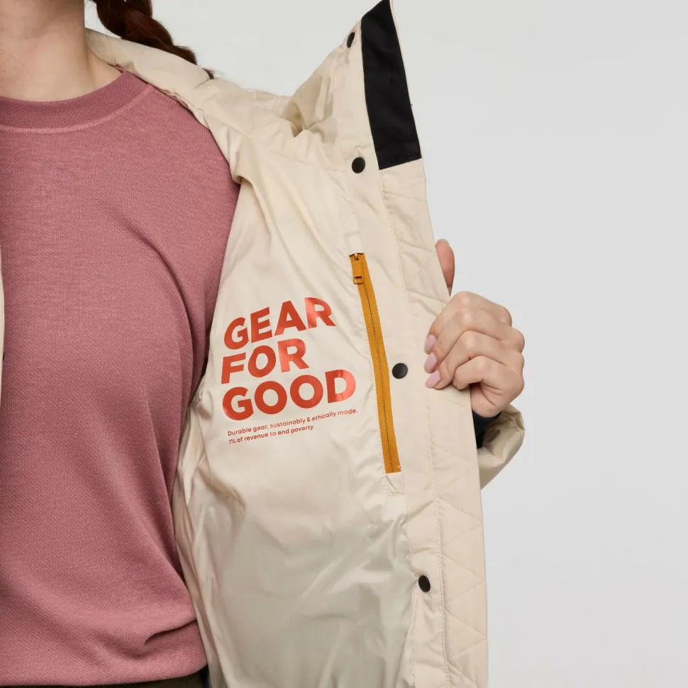 Mit der Women’s Alivio Down Jacket Daunenjacke von Cotopaxi kaufst Du eine Jacke und bekommst zwei! Du kannst sie entweder mit der gesteppten Seite außen tragen und hast zwei Fronttaschen mit Reißverschluss, oder Du trägst die glatte Seite, mit einer Brusttasche, außen. In jedem Fall kann die Women’s Alivio Down Jacket Daunenjacke Deine Körperwärme mit ihrer dicken Daunenfüllung effektiv isolieren und hält Dich auch an den kältesten Tagen schön kuschelig warm. Damit auch bei ausladenden Bewegungen keine Körperwärme entweichen kann, sind die Ärmel mit enganliegenden, elastischen Innenbündchen versehene.