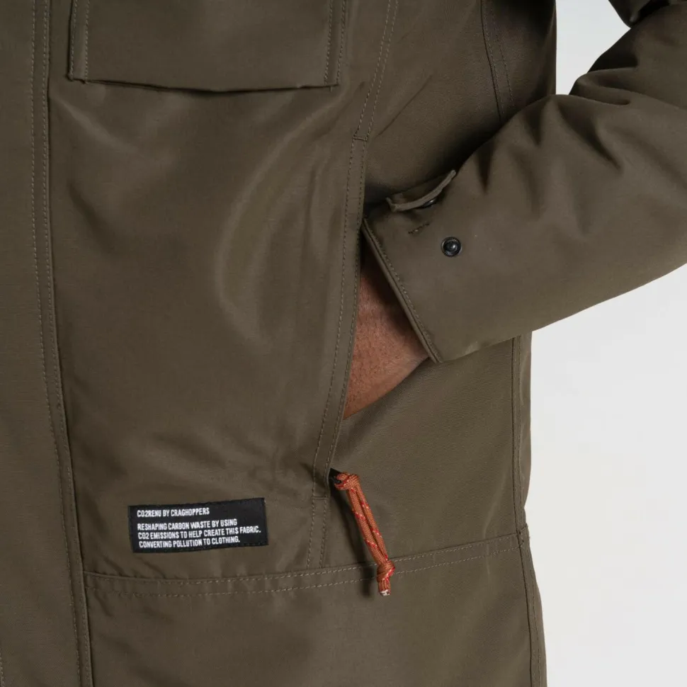 Die Craghoppers Co2Renu Arche Jacket bietet praktischen Stauraum für alle wichtigen Utensilien, die Du unterwegs benötigst. Zwei Brusttaschen, zwei Reißverschluss-Fronttaschen und eine Reißverschluss-Innentasche bieten ausreichend Platz für persönliche Gegenstände und sorgen dafür, dass alles Wichtige griffbereit ist. Diese durchdachte Taschenanordnung macht die Jacke besonders praktisch für den Alltag und Outdoor-Abenteuer.