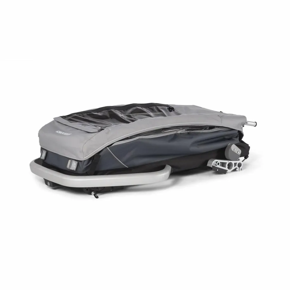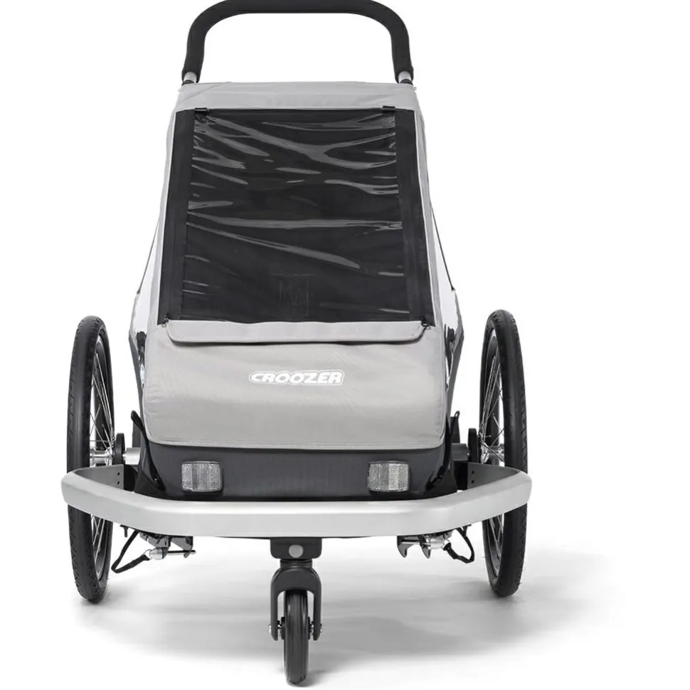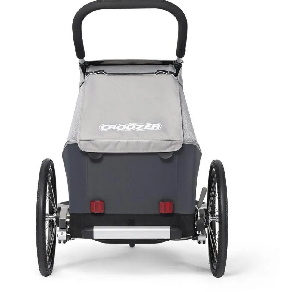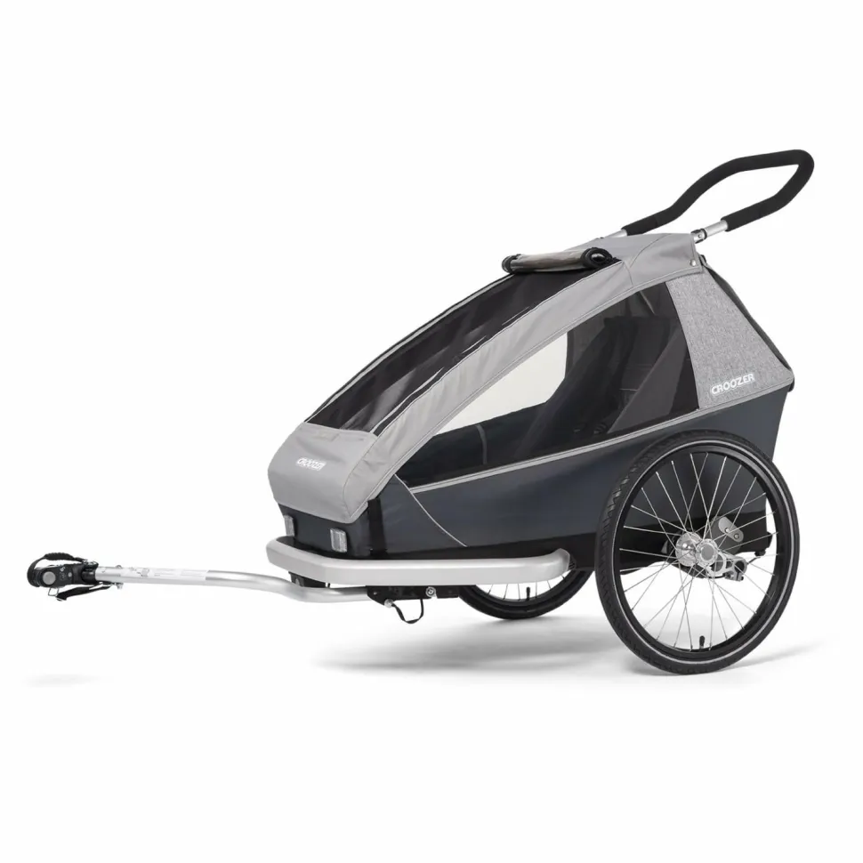 Der Kinderanhänger kann entweder am Fahrrad befestigt oder als Buggy genutzt werden, beide Sets sind im Lieferumfang enthalten. So kann man ganz entspannt mit dem Fahrrad in die Stadt rollen und den Anhänger mit wenigen Handgriffen bereit für das Schlendern durch Altstadtgassen machen. Der Schiebebügel ist hierfür in zwei verschiedenen Positionen montierbar. Zudem bietet der Kofferraum genügend Stauraum für Wickeltasche und Co.