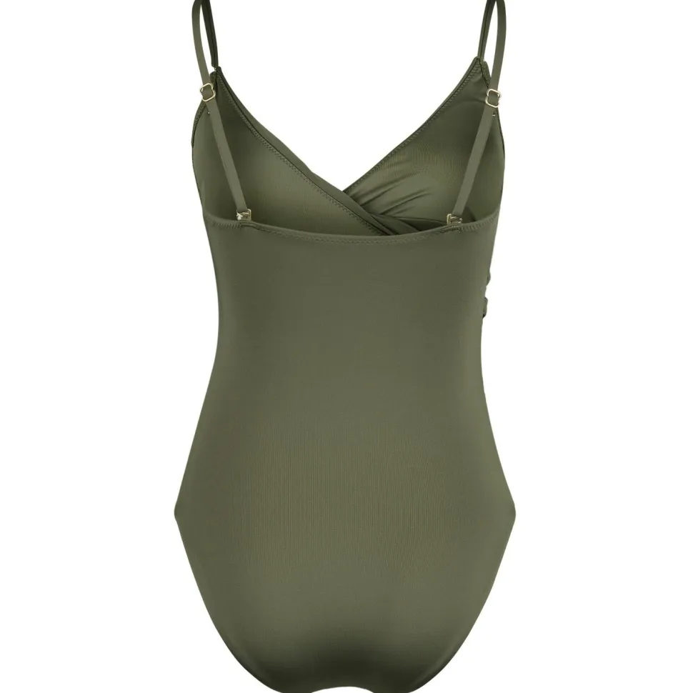 Im modischen Design mit tiefem Ausschnitt kommt der Women’s Wrap Swimsuit Klinte Badeanzug von Dedicated!Die elastischen, schnelltrocknenden Fasern geben optimale Bewegungsfreiheit. Ganz im Sinne der Nachhaltigkeit, enthält der charmante Badeanzug recyceltes Polyester und ist GRS zertifiziert.