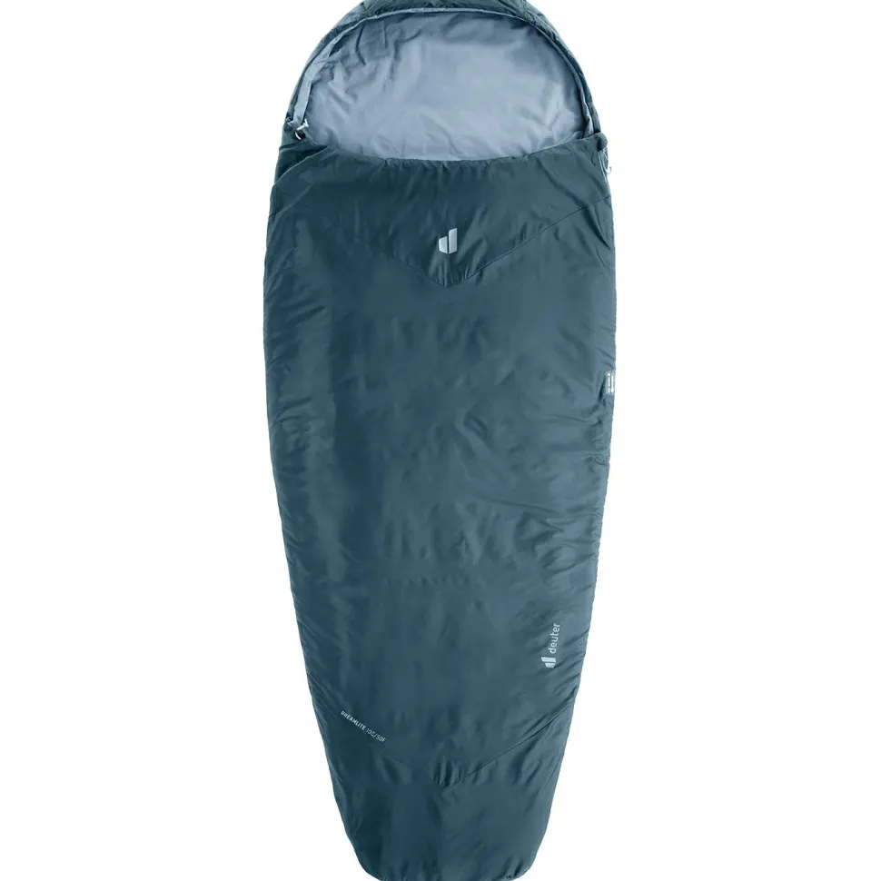 Der Dreamlite 10C/50F Kunstfaserschlafsack von Deuter überzeugt mit seinem geringen Gewicht, einem hervorragenden Schlafkomfort und hochwertigen Materialien. Für Wärme in kühlen Nächten sorgt das ovale Design in Kombination mit einer verstellbaren Kapuze. Damit bleibt auch der Kopfbereich angenehm warm.