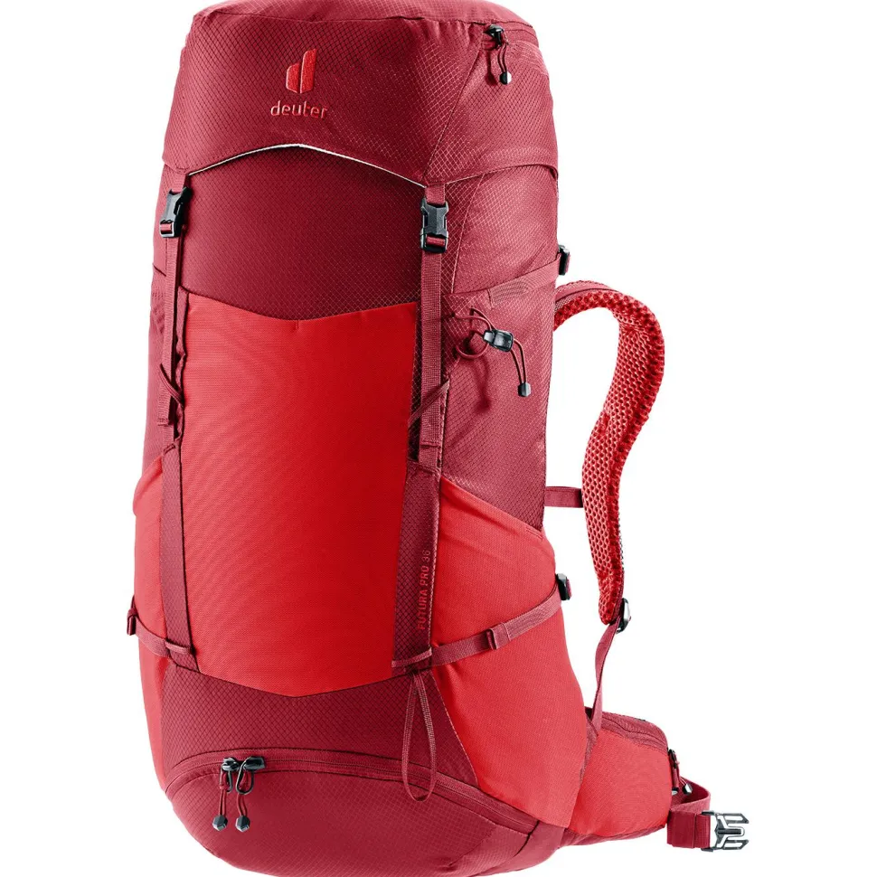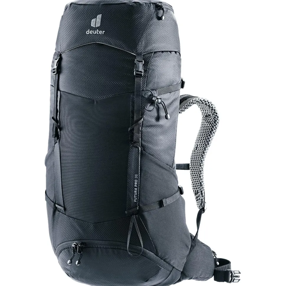 Der Futura Pro 36 Wanderrucksack von Deuter kommt mit gepolsterten und belüfteten Schulter- und Hüftträgern daher und bietet auf anstrengenden Wanderungen einen hervorragenden Tragekomfort. Wenn es zu anstrengenden und schweißtreibenden Anstiegen kommt, kann die entstehende Feuchtigkeit direkt verdunsten und Du profitierst von einer dauerhaften Luftzirkulation am Rücken. Im Innern kannst Du mit einem aufklappbaren Zwischenboden eine Unterteilung des Stauraums vornehmen.