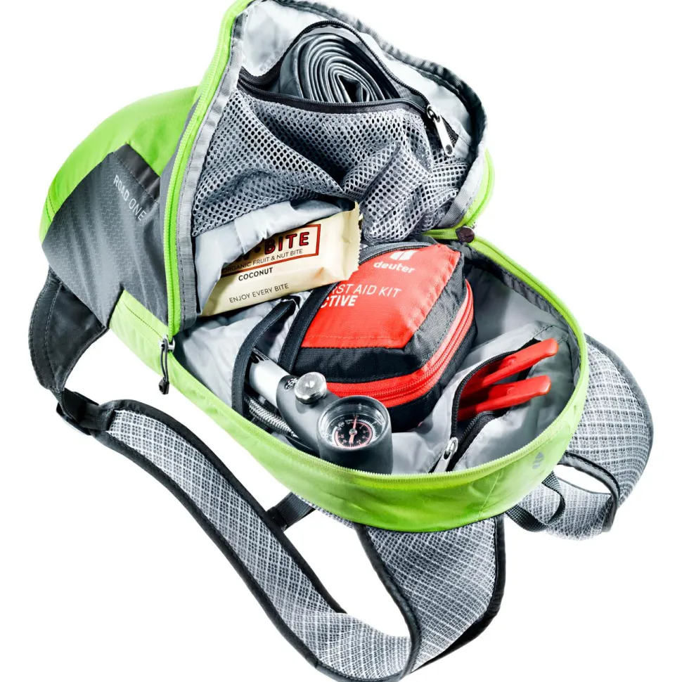 Mit dem Road One 5 von deuter kommst Du in den Besitz eines Rucksacks für leistungsorientierte Rennfahrer, die einen leichten Begleiter mit Stauraum für das Nötigste suchen. Das Volumen von 5 Litern ist schließlich genau hierfür konzipiert, um evtl. eine Regenjacke, einen Powerriegel und weitere Kleinigkeiten einzustecken. Der Rucksack besitzt eine Brillenhalterung, ein Wertsacheninnenfach, ein Stretch-Innenfach, ein Netzinnenfach sowie eine Reißverschluss-Fronttasche. Während die reflektierenden Details für eine bessere Sichtbarkeit bei Dämmerung und Dunkelheit sorgen, ermöglicht der Rucksack sogar eine Trinkblase bis zu zwei Litern zu integrieren. Somit bist Du mit dem Road One 5 auch für längere Distanzen bestens ausgestattet!