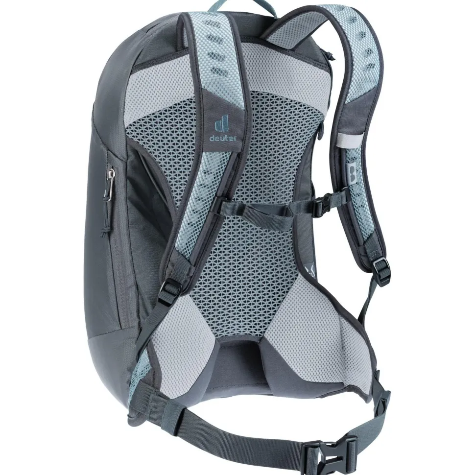 Für Tageswanderungen oder kurze Trips in die Stadt ist der Women’s AC Lite 15 SL von deuter ein treuer Begleiter.Dir passen die meisten Wanderrucksäcke nicht so gut, weil Du eher schmal gebaut bist? Mit der SL-Collection geht deuter auf Bedürfnisse und Proportionen speziell von Menschen mit kürzerem Rücken und schmaleren Schulter ein.Durch den belüfteten Hüftgurt und den höhenverstellbaren Brustgurt wird das Gewicht gut auf Deinem Rücken verteilt. Auch bei warmen Tagen oder schweißtreibenden Aktivitäten ist der Women’s AC Lite 15 SL sehr angenehm zu tragen, da Deine Rückseite durch den Aircomfort-Netzrücken von deuter ständig belüftet wird.Bei einer besonders fotogenen Aussicht oder wenn Du nach dem Weg schauen musst, kannst Du Dein Smartphone in Deiner seitlichen Smartphone-Tasche erreichen, ohne den Rucksack absetzen zu müssen.