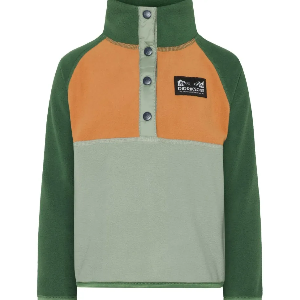 Der Kid’s Monte Half-Buttoned 4 von Didriksons kann mehr als nur gut aussehen! Der Fleecepullover kommt im coolen, farbenfrohen Colorblocking-Design daher und sorgt mit seinem kuschelig-warmen Fleecegewebe für angenehme Isolation. Der hohe Kragen umhüllt Hals und Nacken sanft und falls es doch mal zu warm wird, schafft die halblange Knopfleiste Abhilfe. Der sportlich-ergonomische Schnitt und der 4-Wege-Stretchfaktor sorgen zudem für tipp topp Bewegungsfreiheit. Klasse!