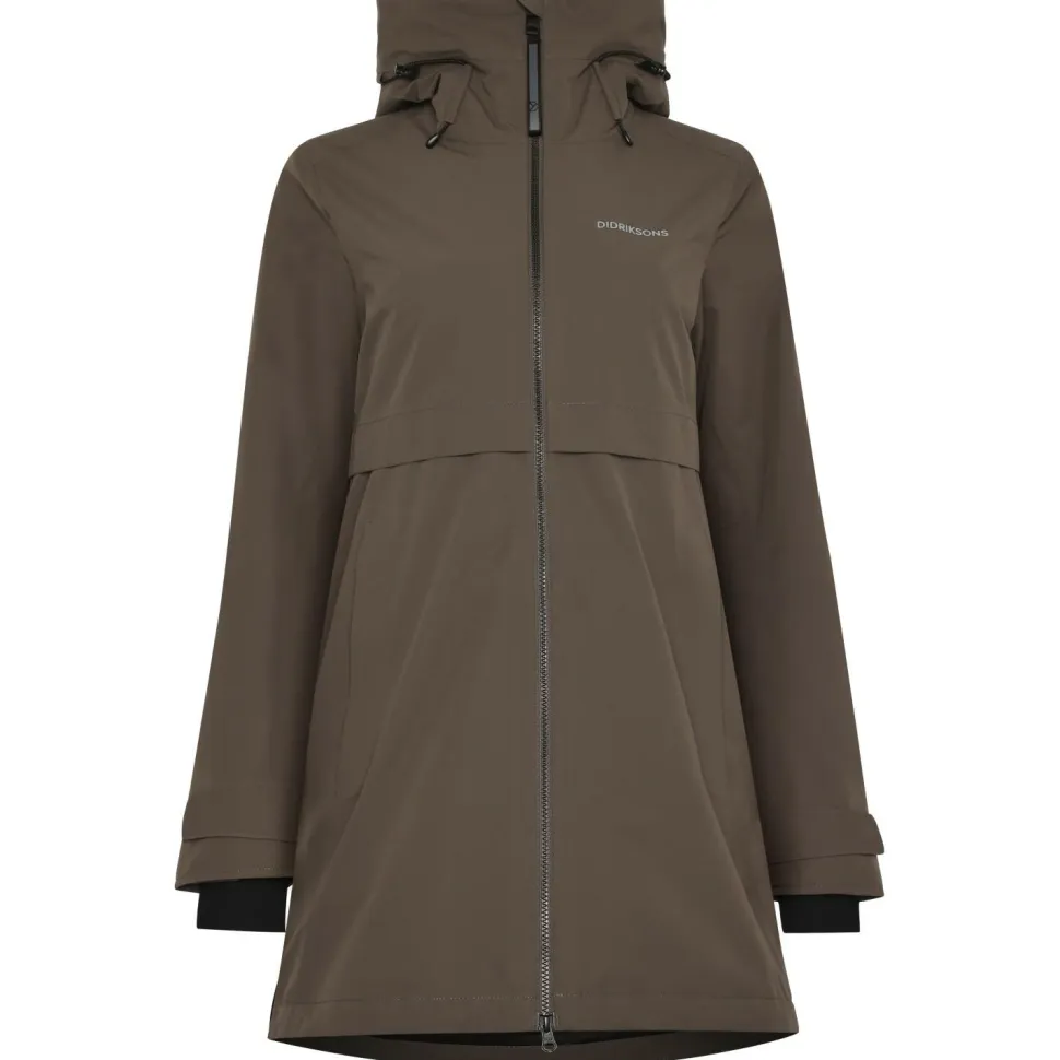 Der Women’s Helle Parka 6 von Didriksons begleitet Dich zuverlässig durch nasse und windige Tage. Mit einer Wassersäule von 10.000 mm hält das Hauptmaterial Regen effektiv ab, sodass Du auch bei plötzlichen Schauern trocken bleibst. Die Atmungsaktivität von 10.000 g/m²/24h sorgt dafür, dass Feuchtigkeit nach außen entweichen kann – ideal, wenn Du morgens zur Arbeit gehst oder beim Stadtbummel unterwegs bist. Dank der 120 g/m² Isolierung genießt Du angenehme Wärme, ohne dass der Parka aufträgt.