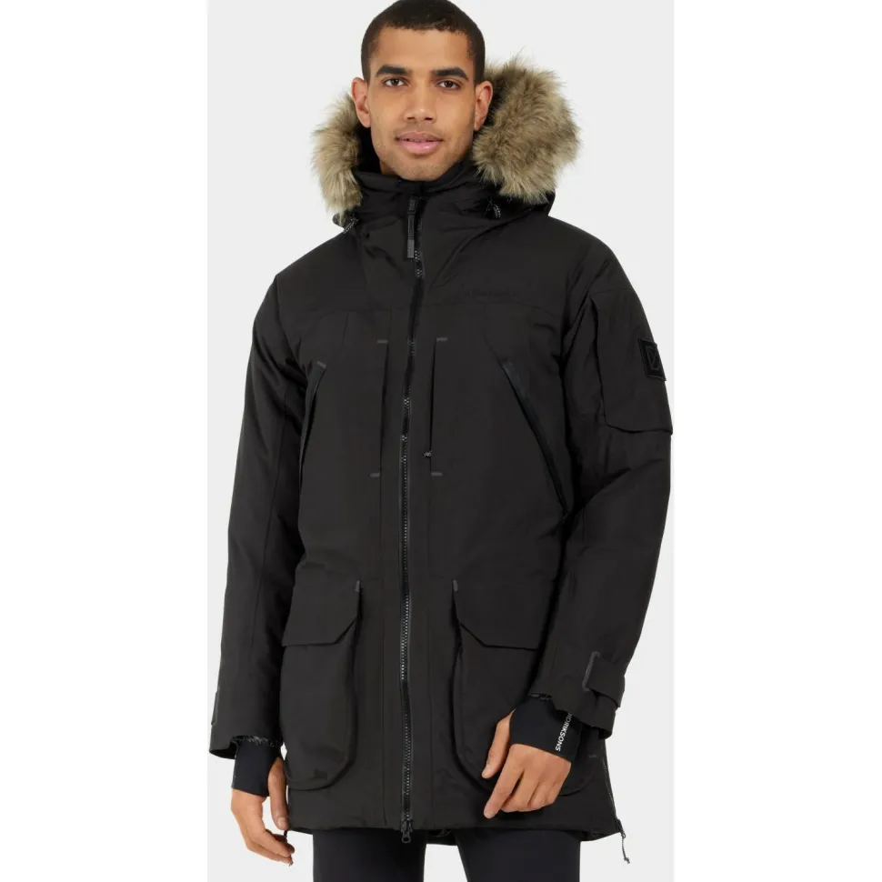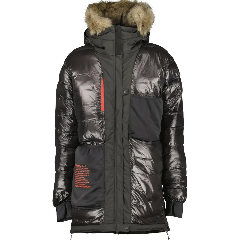 Die Kapuze ist zweifach verstellbar und sorgt mit einem abnehmbaren Kunstpelz für ein optisches Highlight. Der Sitz an der Hüfte ist am Rücken verstellbar. Die Ärmelabschlüsse lassen sich per Klettverschluss regulieren und sind an der Innenseite elastische eingefasst und mit praktischen Daumenlöchern versehen. Ordentlich viel Taschen für den nötigen Stauraum sind natürlich auch dabei. Stark!