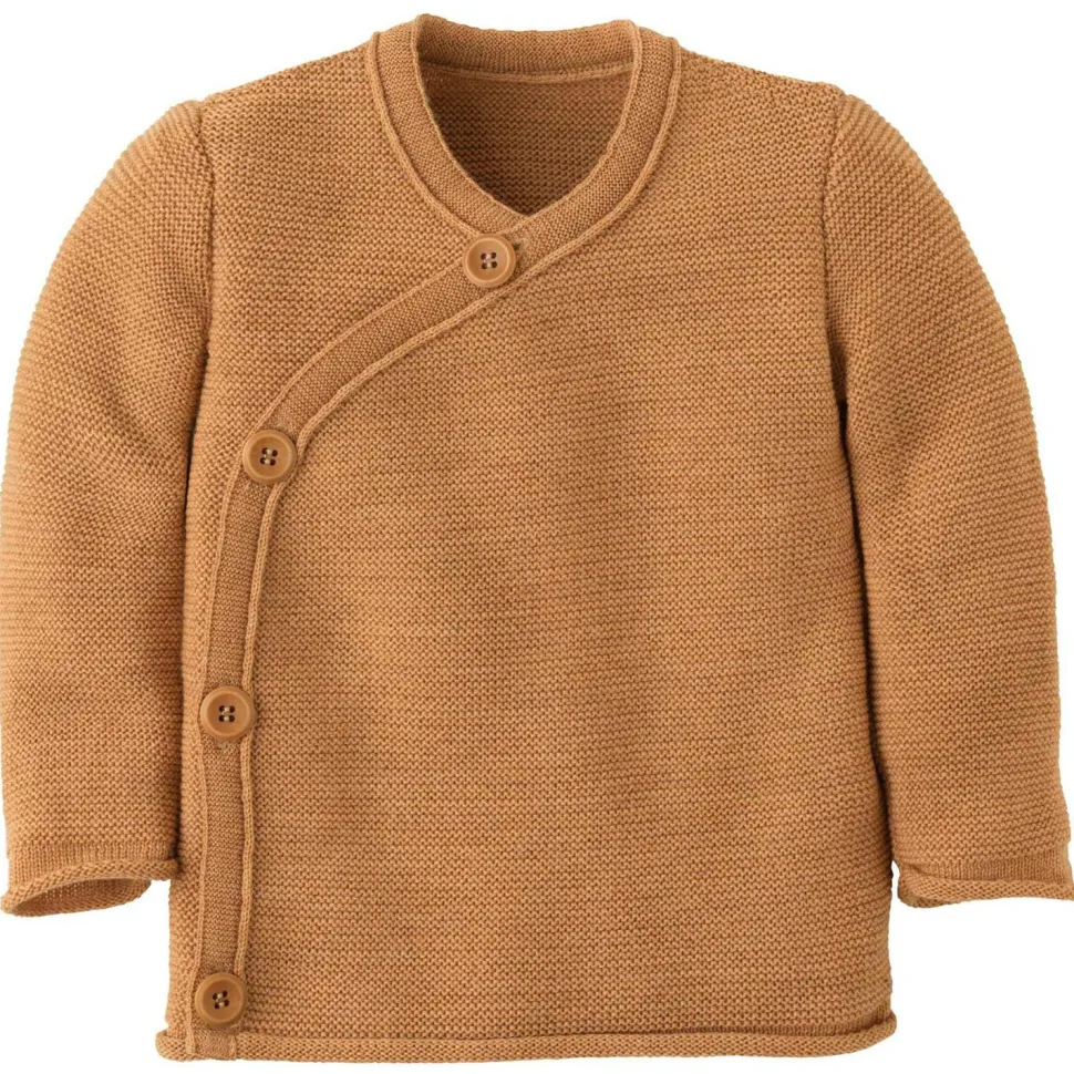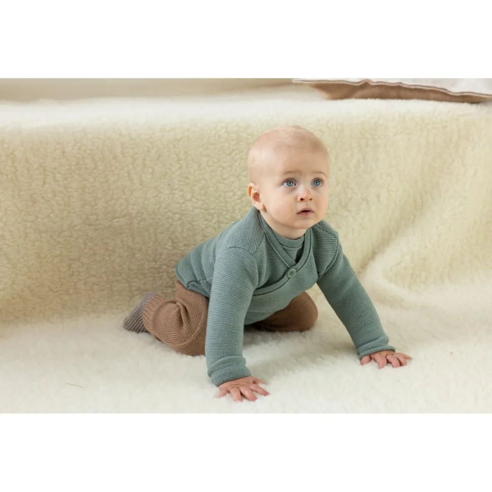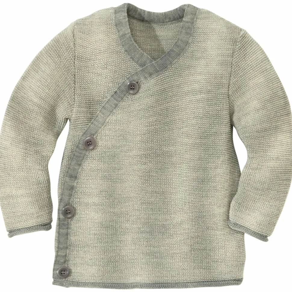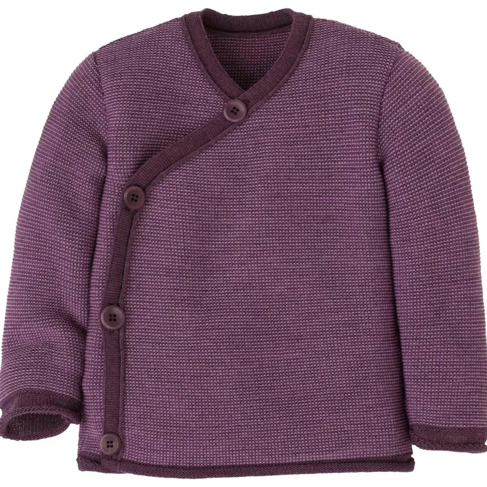Ihre Optik verleiht ihr einen ganz besonderen Touch, der durch die schräg verlaufende Knopfleiste extra betont wird. Dieser Wickelverschluss sieht nicht nur stylisch aus, sondern bringt praktische Eigenschaften mit. Die Allerkleinsten fühlen sich damit auch in Bauchlage und beim Vorwärtsrobben wohl, da nichts am Bauch drückt oder zwackt. Dank des weichen Linksstrick ist die Jacke besonders elastisch und macht jede Bewegung mit.