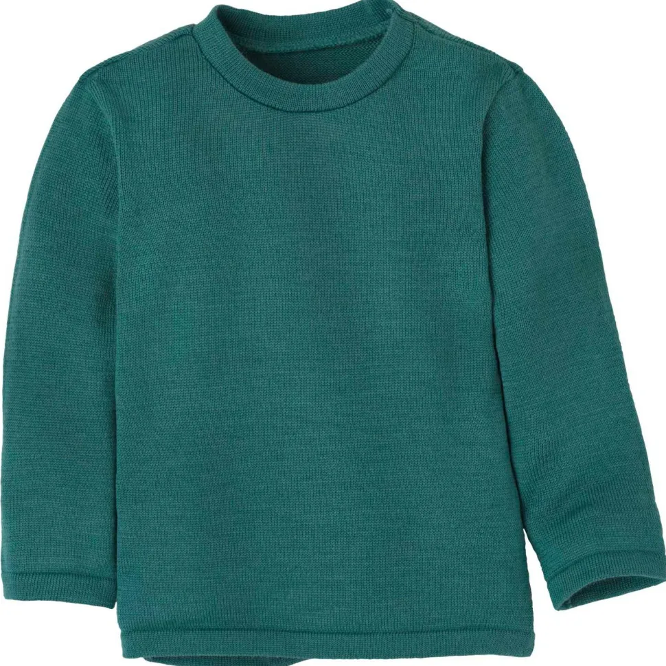 Ganz einfach und klassisch geschnitten, aber immer unverwechselbar in Qualität und Design. Der Wollpullover ist nicht nur äußerst angenehm zu tragen, sondern lässt sich durch das zeitlose Design auch zu nahezu jedem Kleidungsstück kombinieren. Die feinen Schlauchstrick-Bündchen an Ärmeln und Leib verleihen dem Wollpullover einen klassischen und dennoch verspielten Look. Der Rundhalsausschnitt schmiegt sich angenehm an den Hals, ohne einzuengen. Ein Wollpullover für vielseitige Unternehmungen im kindlichen Alltag – der Kid’s Strick-Pullover von disana.