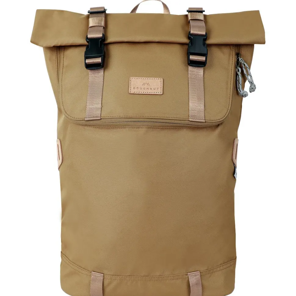 Als Rohmaterial setzt Doughnut beim Christopher 18 Reborn Series Daypack auf recyceltes Polyester und veredelt den hübschen Rucksack mit Applikationen aus recyceltem Leder. Die umweltfreundlich Mischung verfügt über einen praktischen Roll-Top Verschluss und schützt im Alltag und in der Freizeit sehr gut vor Schmutz, Nässe und Feuchtigkeit. So bleibt auch das Notebook im 15 Zoll großen Laptopfach bestens geschützt. Der wetterfeste Allrounder ist mit einem extra Frontfach und einem gepolsterten Tragesystem ausgestattet. Insgesamt 18 Liter Stauraum stehen für den täglichen Einsatz zur Verfügung.