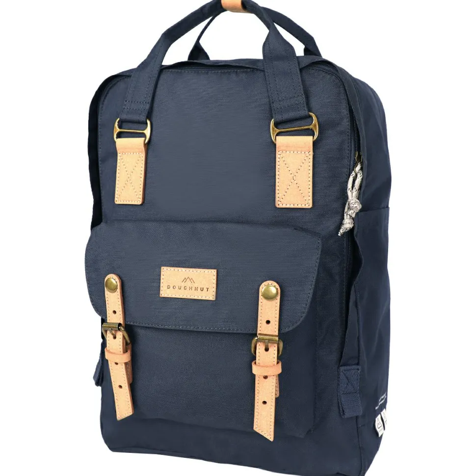 Die Lederriemen an der vorderen Tasche sind mit Druckknöpfen versehen, mit denen Du sie ganz leicht öffnen kannst. Durch den integrierten Reißverschluss lässt sich der Rucksack ganz einfach komplett öffnen. So kannst Du alles sauber und übersichtlich in Deinem Doughnut Rucksack unterbringen. Für Studierende oder Berufstätige eignet sich der Macaroon Rucksack ebenfalls wunderbar. Zu seiner Innenausstattung gehört ein gepolstertes Laptopfach, passend für Geräte bis zu 14“ Zoll und für A4 Dokumente. Des Weiteren hat er kleine Innentaschen und Fächer, die mit Reißverschluss oder Gummiband versehen sind.
