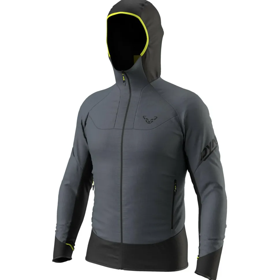 Die Dynafit Mezzalama Polartec Alpha Jacket eignet sich sowohl für das tägliche Training auf der Piste als auch für lange Touren im Gelände. Die Kunstfaserjacke ist mit Polartec Alpha isoliert. Zum Teil kommen sowohl bei der Isolation als auch beim Innenmaterial recycelte Fasern zum Einsatz. Damit die Füllung gegen Durchfeuchtung geschützt ist, wurde die Außenseite der Isolationsjacke mit einer wasserabweisenden Imprägnierung behandelt.
