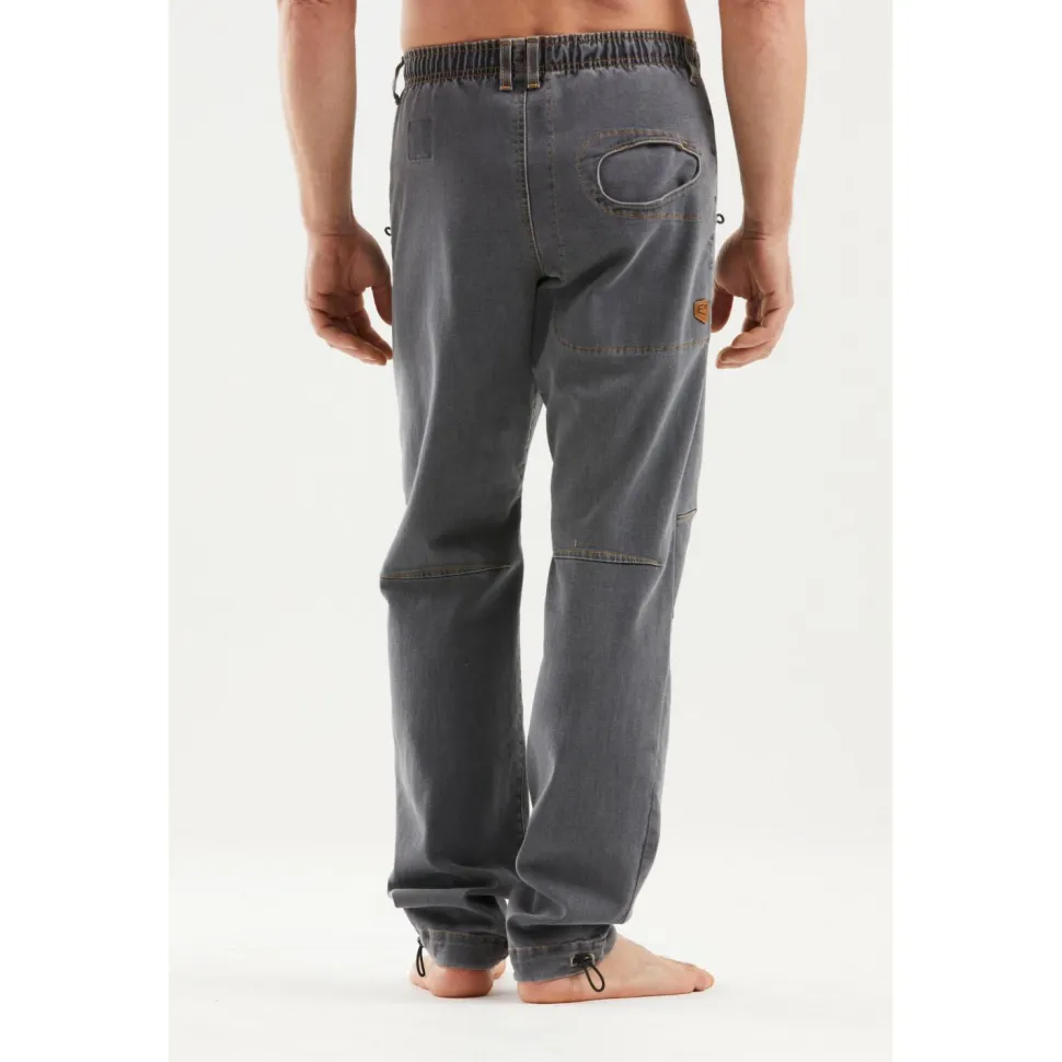 Locker und etwas weiter geschnitten ist die Rondo Denim 2.3 Boulderhose von E9 ein funktionaler Begleiter beim Klettern und in der Freizeit!Gefertigt aus Denimstoff, mit Baumwolle und Kunstfaser sorgt sie für Robustheit und Elastizität bei gleichzeitig viel Bewegungsfreiheit. Die Beinabschlüsse sind individuell verstellbar mit dem eingearbeiteten Kordelzug. Hingucker sind die ovalen Tascheneingriffe am Gesäß- und den Seitentaschen. Der elastische Hüftbund kommt mit Knopfverschluss und Gürtelschlaufen. Luftig und mit hohem Tragekomfort ist die Hose was für Herren mit Sinn für Style und Praktikabilität.