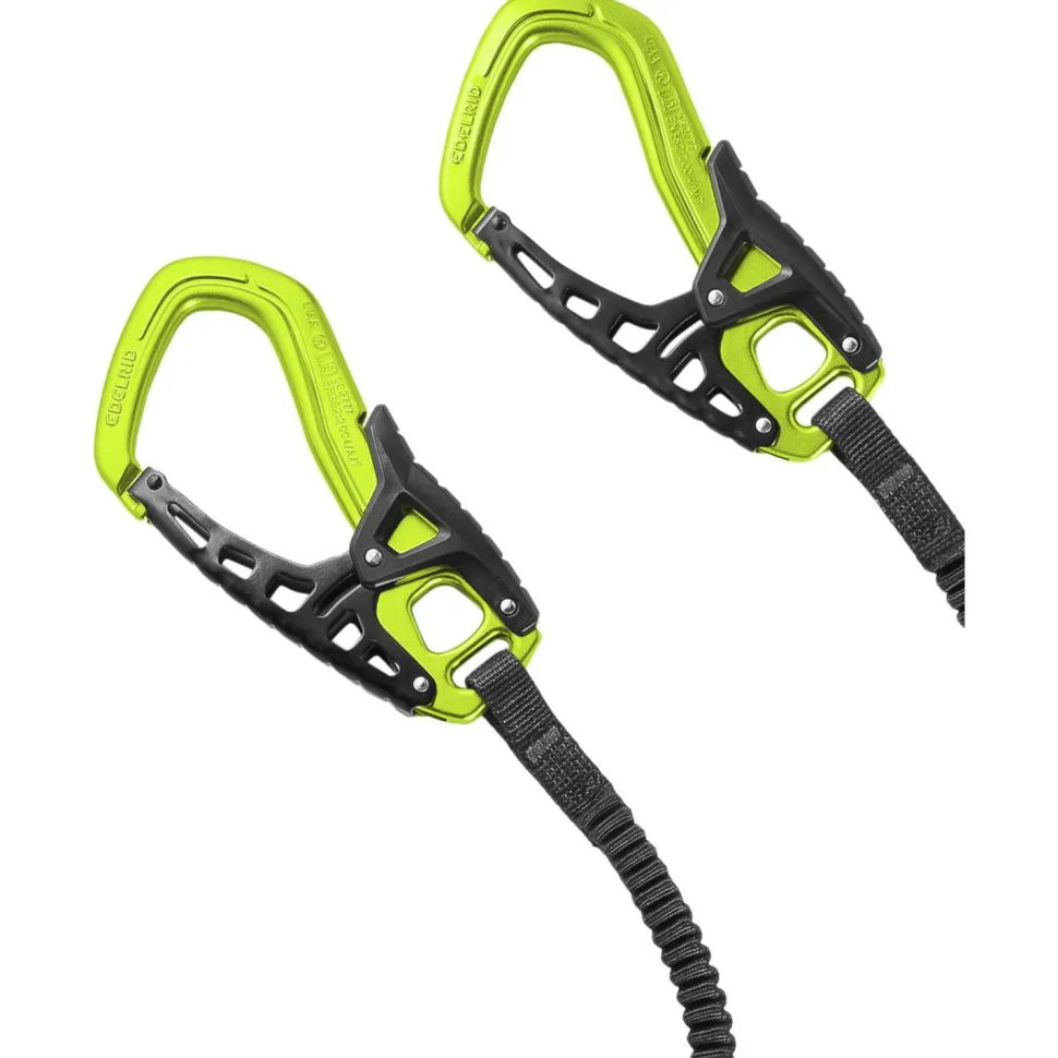 Das Klettersteigset Cable Comfort Tri von Edelrid hebt Deine Klettersteig-Erfahrung auf ein neues Level. Der Swivel mit 3 Gelenken verhindert Krangeln der schlanken Arme und sorgt für mehr Flexibilität.Die Arme sind besonders elastisch und ermöglichen dadurch körpernahes Handling. Dank dem HMPE-Dyneema sind sie gleichzeitig verschleiß resistent und besonders leicht. Das Gesamtgewicht des Klettersteigsets ist stark verringert.Die optimierte Version der One-Touch Karabiner von Edelrid sorgen für Sicherheit für Deine Finger und schnelles Klippen. Durch die Entriegelung der Karabiner mit dem Handballen, brauchst Du Deinen Daumen nicht und ein Einklemmen Deiner Finger zwischen Karabiner und Drahtseil wird dadurch verhindert.