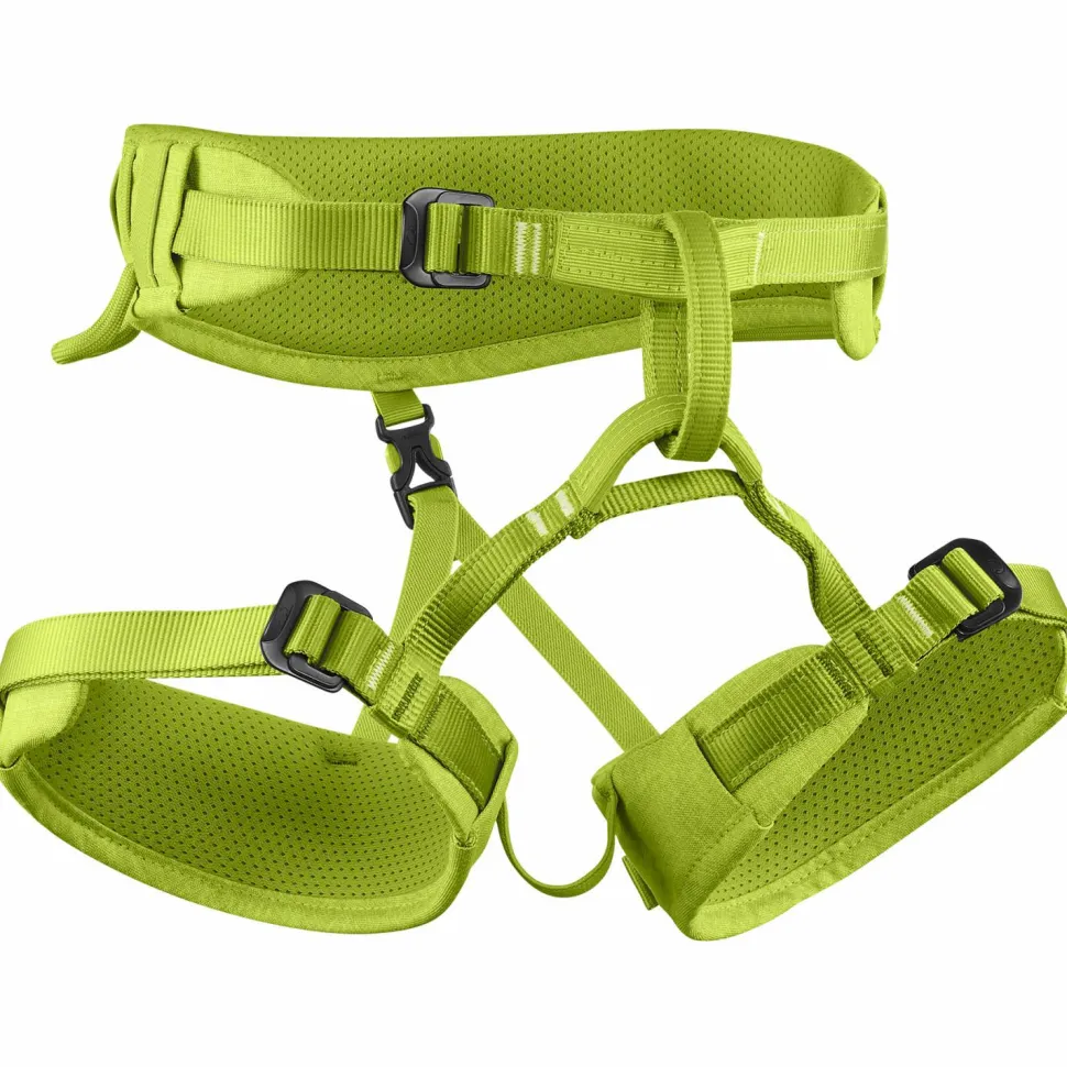Der Hüftgurt kommt mit einer einzelnen Schnalle aus, da sich das Polster bewegen und somit nach dem Verstellen neu zentrieren lässt. An den Beinen und an der Taille kommen Side-Block-Schnallen zum Einsatz, die einfach und sicher zu bedienen sind. Zwei hochfeste Materialschlaufen bieten Platz für Expressschlingen und Co, wenn die ersten Vorstiege anstehen. Der Einbindepunkt ist zusätzlich verstärkt, um den Abrieb an dieser stark beanspruchten Stelle zu minimieren. Und für ein gutes Gewissen ist auch gesorgt: Der Gurt wird nachhaltig und ressourcenschonend produziert und hat sich dafür das Bluesign-Siegel verdient.