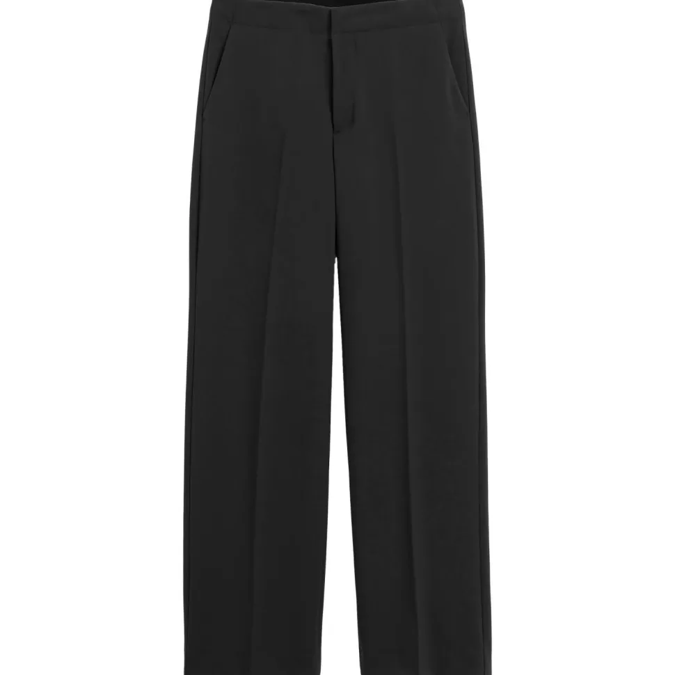 Der leichte Polyester/Viskose-Stoff mit Stretchanteil fällt locker und umschmeichelt das Bein. Der taillierte Bund und die Mittelfalten wirken elegant und erinnern an den zeitlosen Marlenestil. Zwei Seitentaschen und zwei paspelierte Gesäßtaschen ergänzen den Look. Alle Knöpfe sind mit einer Knopfbindung versehen.