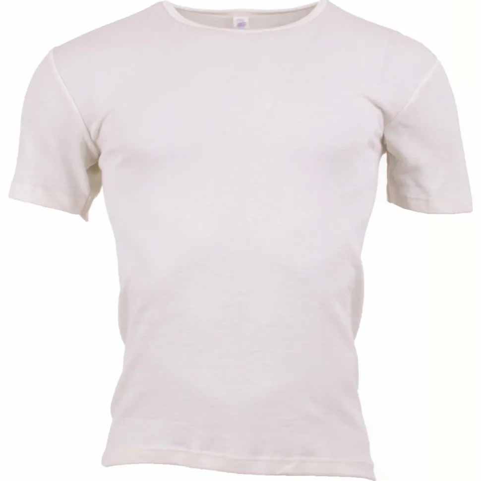 Ein tolles Teil zum Darunter ziehen – das Herren-Unterhemd von Engel. Trägt sich sportlich locker auf der Haut und kratzt kein bisschen dank Merinowolle und Seidenanteil. Ideal als Baselayer, für zu Hause sowie warme Sommertage an der frischen Luft. Der Schnitt ist schlank und hinten ist das Shirt länger als vorne (super zum Fahrradfahren). Es gibt am Rumpf keine Nähte (Rundtrickverfahren), nur die Ärmel sind angenäht. Das Unterhemd wird in Deutschland gefertigt und beinhaltet nur Wolle aus kontrollierter Herkunft.