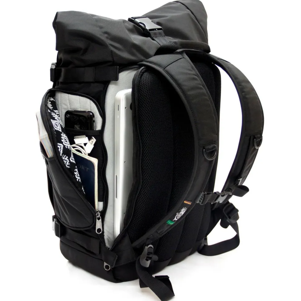 Du suchst einen Rucksack, der Ordnung ins Gepäck bringt? Der Ethnotek Raja Pack 46 Classic macht es Dir leicht: Große Fronttasche mit Reißverschluss, separates Innenfach sowie ein übersichtliches Organizer-Fach sorgen dafür, dass alles seinen Platz hat – vom Ladekabel bis zum Notizbuch. Das gepolsterte Laptopfach schützt Geräte bis zu 17 Zoll zuverlässig. Zwei seitliche Taschen bieten schnellen Zugriff auf Wasserflasche oder Müsliriegel unterwegs. Besonders praktisch: Der seitliche Zugang per Reißverschluss sowie der Rollverschluss ermöglichen flexibles Packen und unkomplizierten Zugriff auf Dein Gepäck. Und falls mal eine Isomatte oder Jacke außen befestigt werden muss – die stabilen Schnallen machen’s möglich.