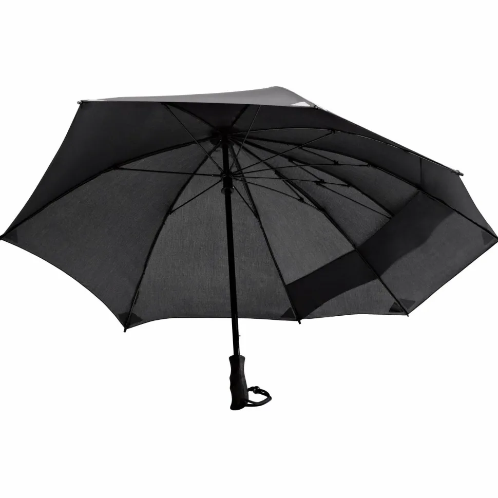 Egal wie das Wetter wird, ob regnerisch oder mit starker Sonneneinstrahlung – dieser Schirm gibt einem den Wetterschutz, den man unterwegs braucht. Der Schirm ist aus robustem, wetterfestem Material hergestellt und wird dadurch zu einem langlebigen Begleiter auf den unterschiedlichsten Outdoor-Unternehmungen. Mit dem verlängerten Dach bleiben mit dem Swing Backpack vor allem der Rücken und der Rucksack trocken, ohne lästiges Heruntertropfen und -laufen von Wasser zwischen Rucksack und Rücken.Mit 350 g ist der Schirm ein echtes Leichtgewicht und lässt sich bei Nichtgebrauch platzsparend in der praktischen Aufbewahrungshülle verstauen.