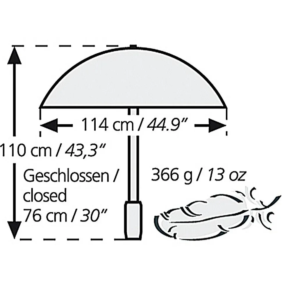 - Länge: 110 cm; Länge geschlossen: 76 cm; Durchmesser offen: 114 cm