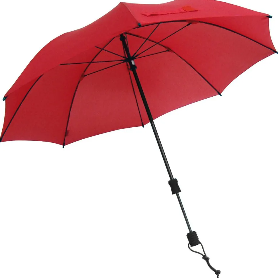 Der Euroschirm Swing Handsfree lässt sich dank des Teleskopstiels unterschiedlich lang ausziehen und durch eine Drehbewegung in jeder Höhenposition fixieren.Mit den zwei Halteclips und einem Klettband kann man den Schirm an den Tragegurten des Rucksacks befestigen. Dabei dient die Handschlaufe am Schirmgriff als Fixierung am Hüftgurt.Egal ob am Rucksack befestigt oder in der Hand gehalten – dieser Schirm lässt einen nicht im Regen stehen!