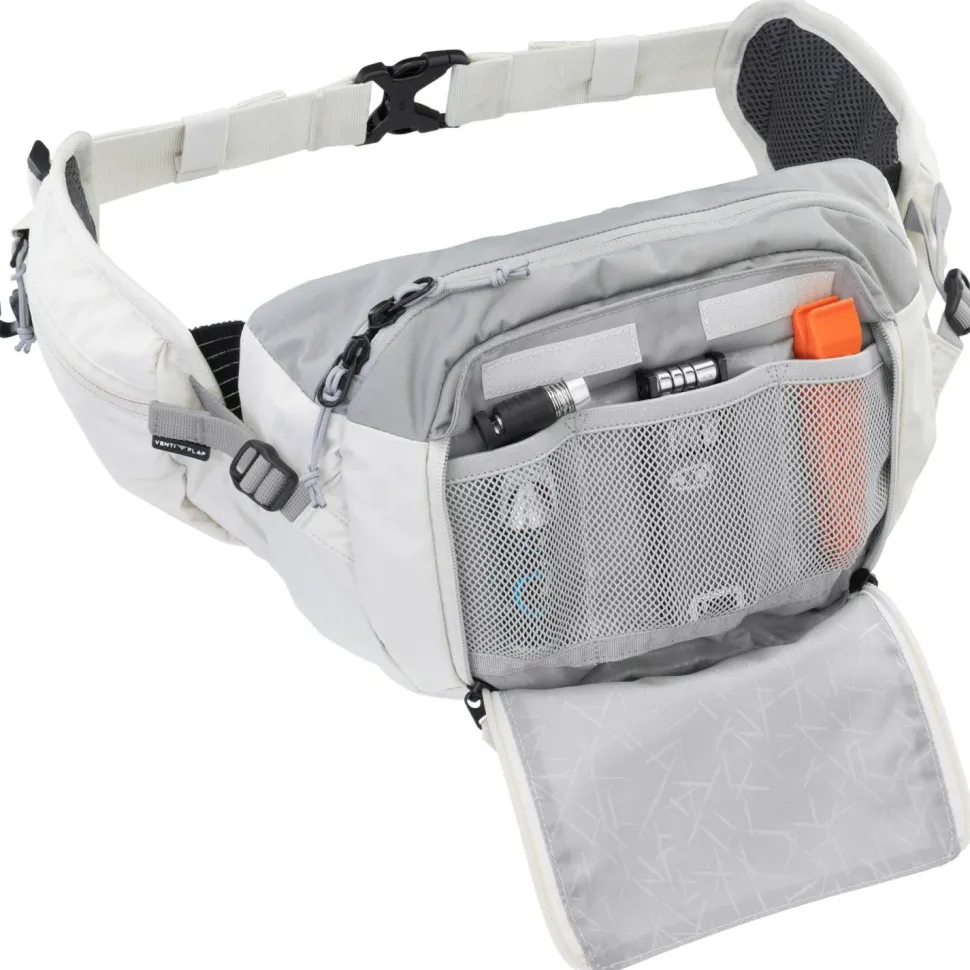 Die Hip Pack 3 von Evoc ist eine Hüfttasche für Bike-Runden mit wenig Equipment. Dank des Air Flow Contact Systems wird eine maximale Rückenbelüftung gewährleistet, sodass Du auch bei intensiven Fahrten stets kühl und trocken bleibst. Das Venti Flap System ermöglicht es Dir, den Abstand zum Rücken individuell einzustellen, was die Luftzirkulation und den stabilen Sitz optimiert.