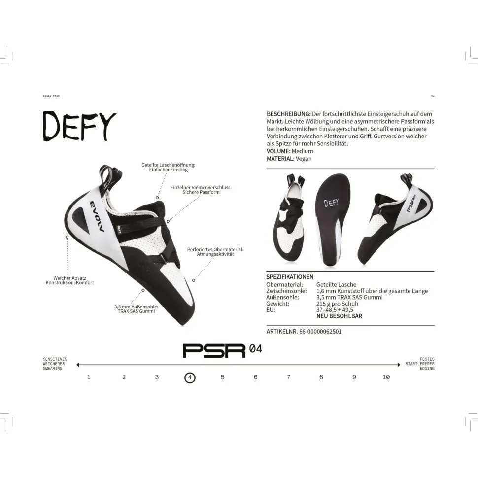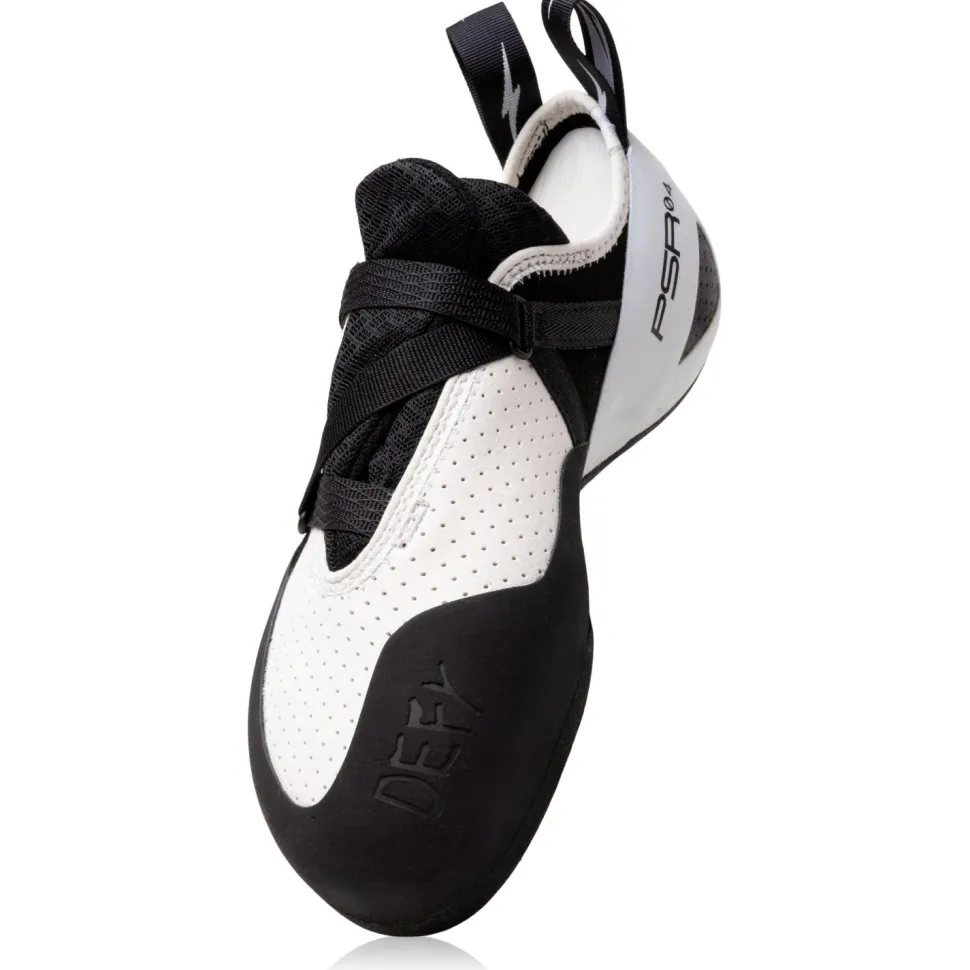 Der Defy verfügt über eine praktische geteilte Laschenöffnung, die das An- und Ausziehen erleichtert. Der Einzelriemen-Verschluss ist nicht nur sicher, sondern bietet auch einen komfortablen Sitz bei gleichzeitig hoher Sensitivität – perfekt für das feine Gespür beim Klettern. Außerdem sorgt die weiche Fersenkonstruktion für Komfort, sodass Du Dich ganz auf Deinen nächsten Zug konzentrieren kannst.