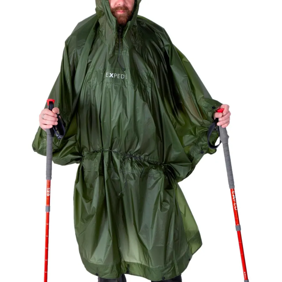 Leicht und vielseitig wie ein Schweizer Taschenmesser: der Bivy Poncho UL von Exped! In Sekunden übergezogen schützt er zuverlässig vor starkem Regen. Der ultraleichte Wander- und Veloponcho ist auch als Biwaksack oder Tarp nutzbar und lässt sich mithilfe von Druckknöpfen individuell an die Körpergrösse anpassen. Dank der Acht Eck- und Mittelschlaufen lässt er sich außerdem so gut wie überall abspannen. Hinzu kommen noch die Bauchkordel und die anatomisch geformte Kapuze mit Schild, dank derer der Bivy Poncho UL jederzeit perfekt sitzt!