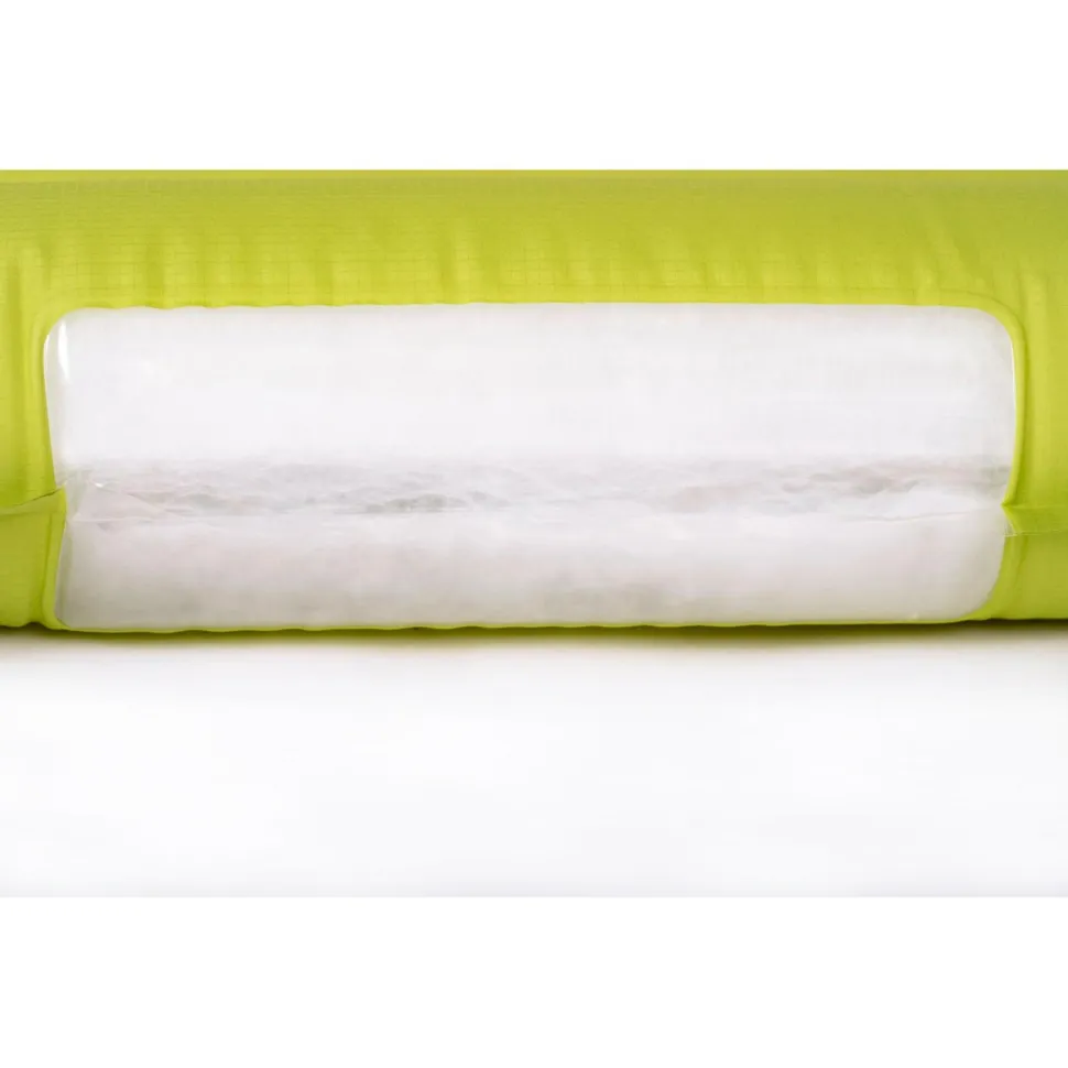 Exped stattet die Ultra 5R Isomatte mit dem leistungsfähigen und besonders gut haltbaren Flatvalve Ventil aus. In Kombination mit dem mitgelieferten Schnozzel Pumpbag wird die Matte zügig und mühelos aufgeblasen. Dafür ist weder Lungenkraft nötig, noch gelangt Feuchtigkeit über die Atemluft in die Matte.