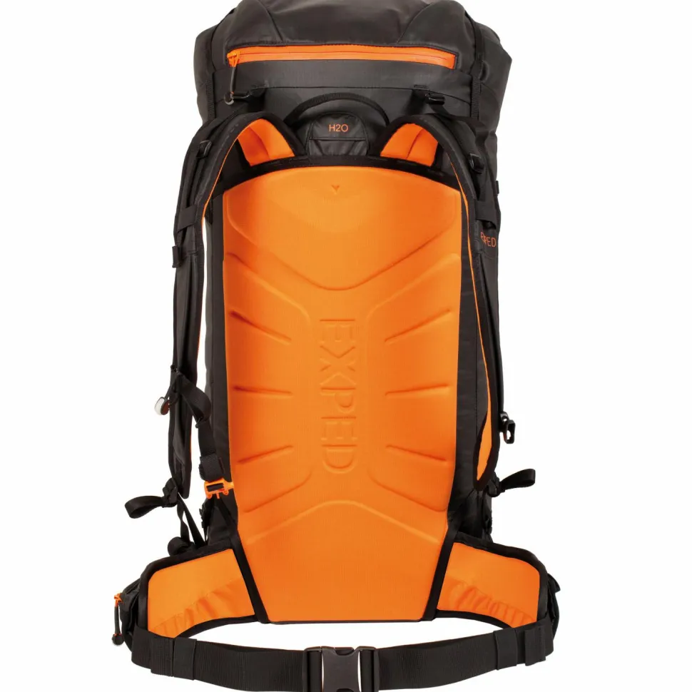 Mit dem Verglas 40 hat Exped einen robusten Wanderrucksack im Angebot, der sich ideal zum Wandern, Trekking und für alpine Hochtouren eignet.Wanderstöcke und Eispickel lassen sich durch mehrere Schlaufen bequem an der Außenseite fixieren. Am Daisy Chain System kann weitere Ausrüstung wie ein Kletterhelm angebracht werden. Das vorgeformte Rückenpolster aus weichem Schaumstoff kann herausgenommen werden, um Gewicht zu sparen. Über seitliche Kompressionsriemen lässt sich das Volumen schnell anpassen. Zwei Taschen am Hüftgurt, eine Deckeltasche und das große Hauptfach mit seitlichem Zugriff bieten viel Platz für Verpflegung und zusätzliche Bekleidung. Das wasserabweisende Außenmaterial schützt den Inhalt vor Feuchtigkeit.Der gepolsterte Boden und ein moderner Schnellzugriff auf das Innenfach machen den Exped Verglas 40 zu einem idealen Wanderrucksack für die nächste Bergtour.