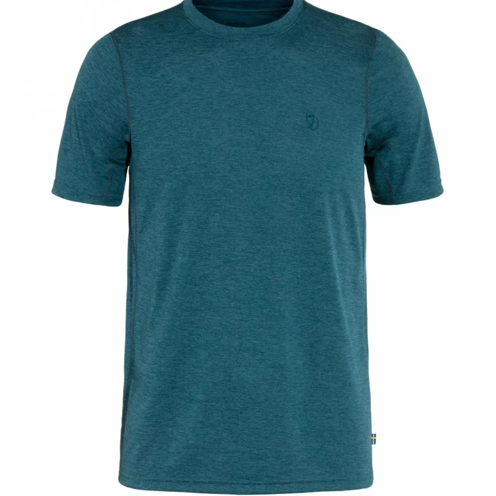 Durch die versetzten Schulternähte scheuert das Fjällräven Abisko Day Hike S/S beim Wandern mit Rucksack nicht und liegt angenehm weich auf Deiner Haut. Die Zwickel-Konstruktion unter den Armen engt Dich bei anspruchsvollen Kletterpassagen nicht ein. Feuchtigkeit wird durch das atmungsaktive und schnell trocknende Funktionsgewebe aus recyceltem Material rasch abtransportiert. Das Abisko Day Hike S/S von Fjällräven ist etwas weiter geschnitten als die meisten T-Shirts.