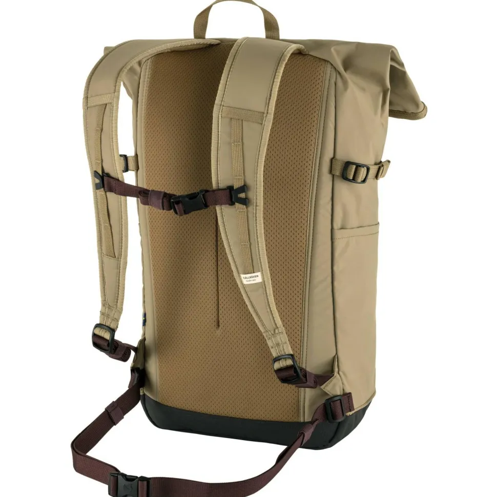 Fjällräven setzt bei diesem Tagesrucksack auf recyceltes Funktionsgewebe. Im Bodenbereich kommt besonders abriebfestes BergShell zum Einsatz, um gegen Abrieb und Beschädigungen von unten zu schützen. Der Reißverschluss auf der Oberseite kann zusätzlich mit einem Haken befestigt werden, indem das ganze nach vorne geklappt wird, um gegen das Eindringen von Nässe zu schützen.