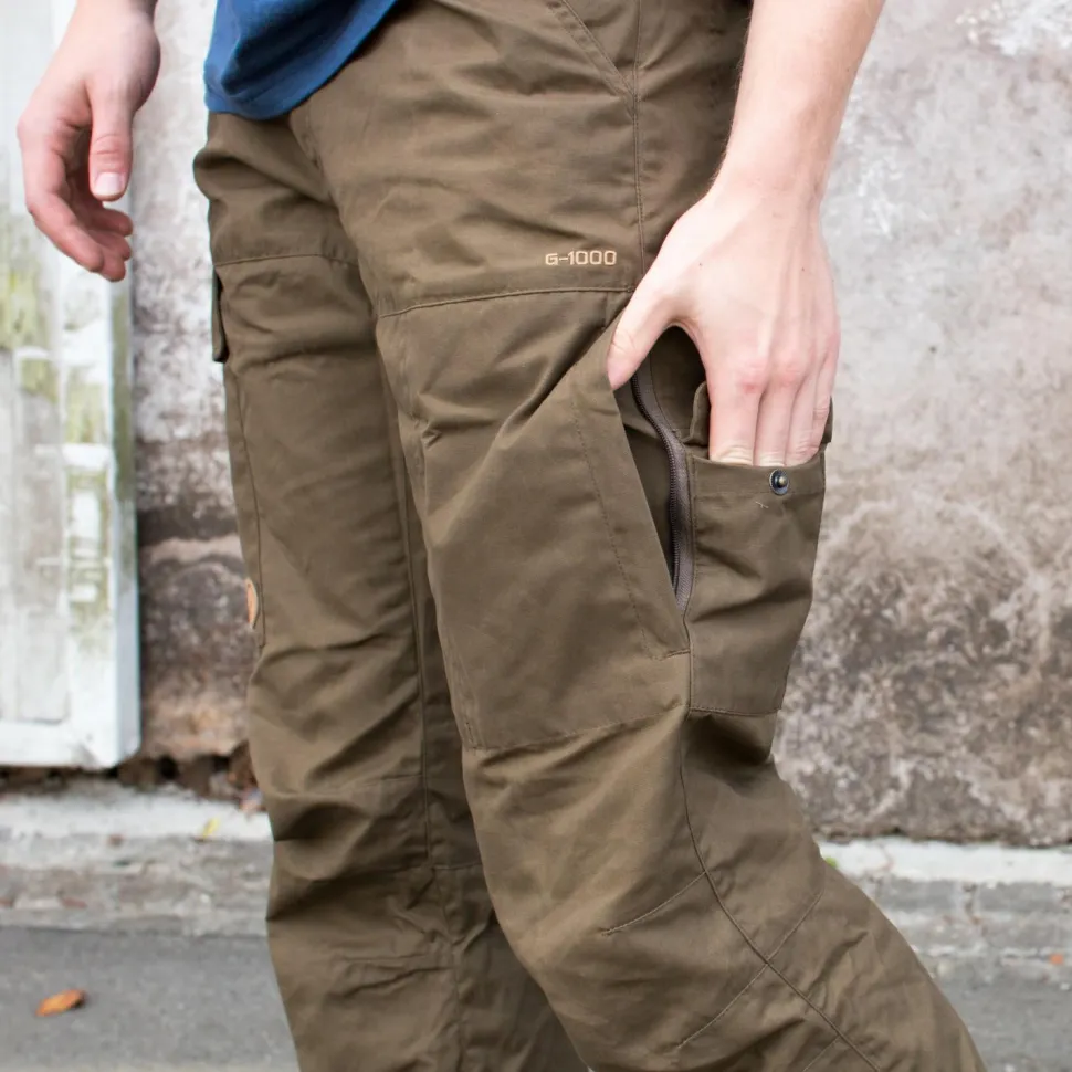 Die Karl Pro Trousers von Fjällräven ist die perfekte Allround-Wanderhose. Sie ist in einem regulären Schnitt gehalten, wodurch sie weder zu eng, noch zu weit sitzt. Zusätzlich verfügt sie über vorgeformte Knie, wodurch für noch mehr Bewegungsfreiheit gesorgt wird. Somit wird die Hose zum perfekten Begleiter auf allen Wander- und Trekkingpfaden dieser Welt. Damit das Wichtigste immer direkt am Mann ist, verfügt die Trekkinghose über eine stattliche Auswahl an Taschen. Eine Beintasche ist mit einem Reißverschluss sowie einer zusätzlichen Innentasche versehen. Dazu sorgen zwei Einschubtaschen, eine Gesäßtasche mit geknöpfter Klappe und eine Werkzeugtasche für Messer oder das Multitool für weiteren Stauraum. Somit wird gewährleistet, dass wirklich alle wichtigen Utensilien griffbereit verstaut werden können und nicht auf jeder kleinen Tour der Griff in den sperrigen Rucksack nötig wird! Einfach ieal für alle Outdoor-Enthusiasten: Die Fjällraven Karl Pro Trousers.