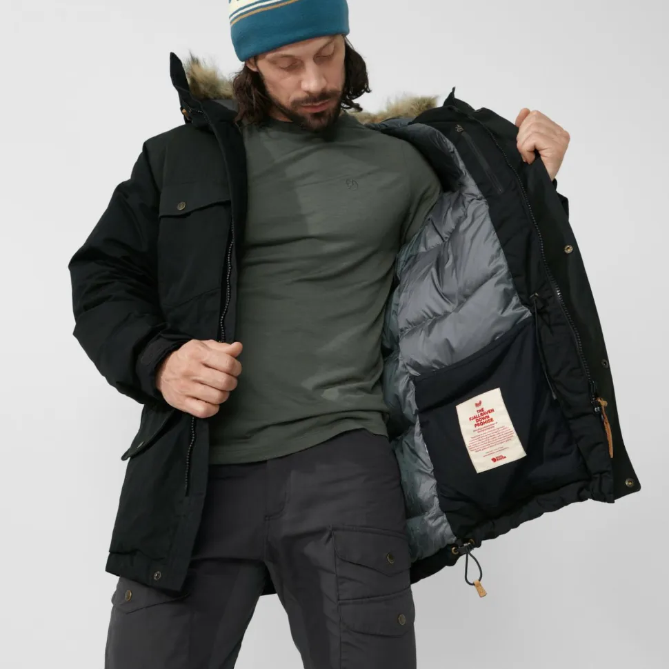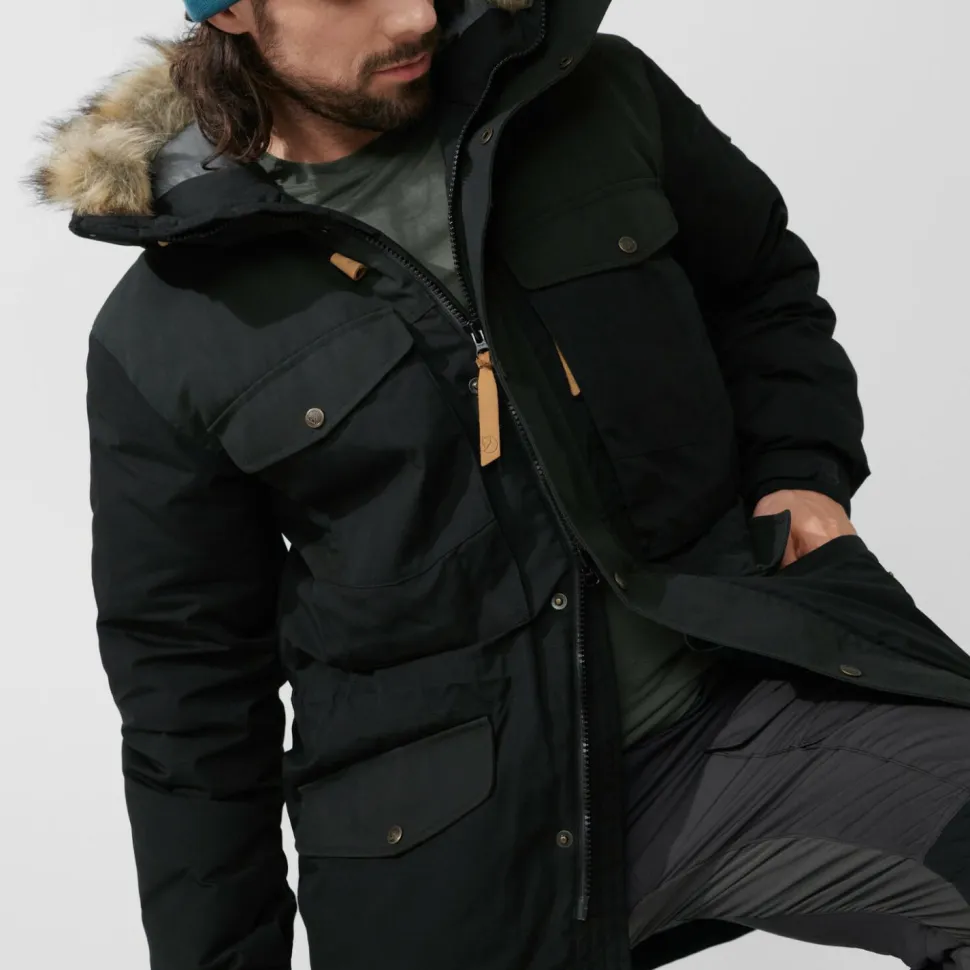 Der Singi Down Jacket Parka von Fjällräven ist für die kalten Tage gemacht. Seine hochwertigen Füllmaterialien sorgen für einen tollen Isolations-Effekt und speichern die Körperwärme gekonnt. So bleibt es Dir auch bei Minusgraden angenehm warm ums Herz. Falls die Finger einmal mehr frieren sollten, können diese auch in den flauschigen Taschen der Jacke aufgewärmt werden. Gegen Wind und Wetter haben die robusten Außenmaterialien der Jacke ein Ass im Ärmel. Diese Störenfriede haben keine Chance, sich einen Weg ins Innere der Jacke zu bahnen, dafür sorgen die bewährten G-1000 Materialien von Fjällräven. So bleibt es hier angenehm trocken und gemütlich. Für Kleinigkeiten wie das Smartphone und Co bieten die vielen Taschen verschiedene Aufbewahrungsorte.