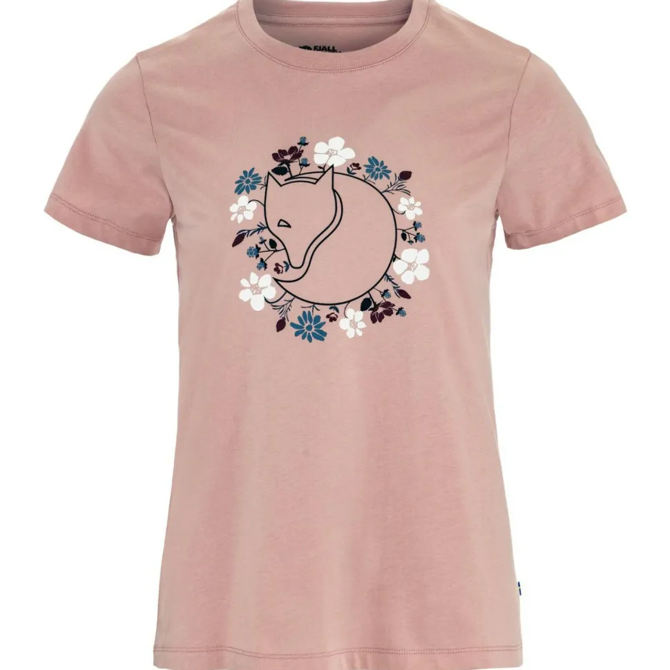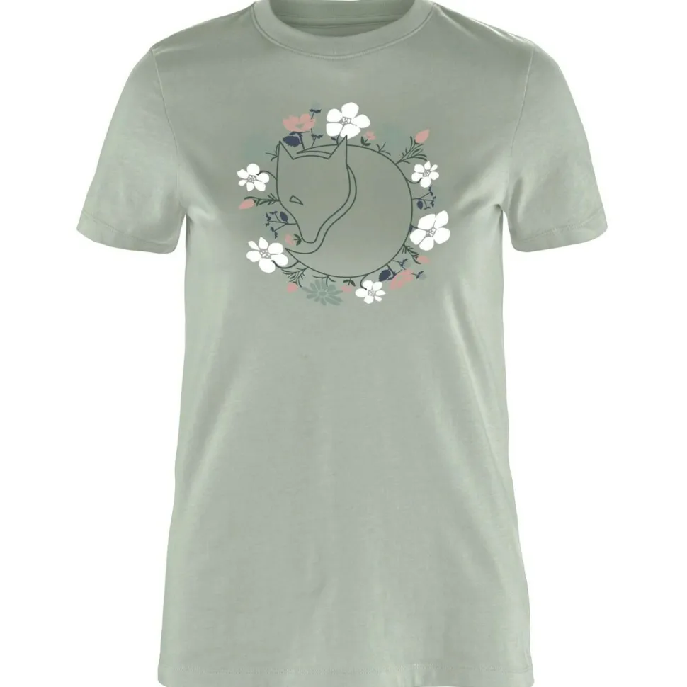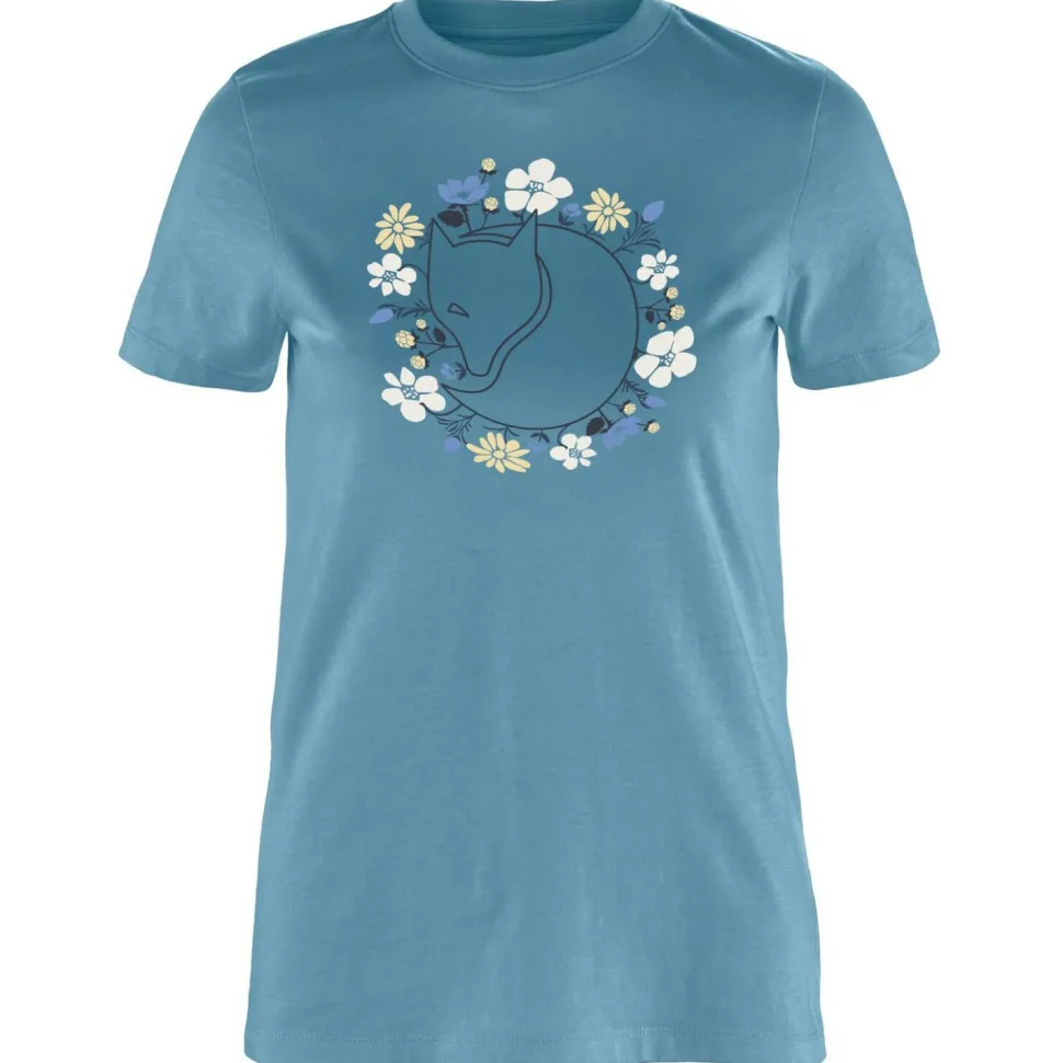 Das Women’s Fjällblomster Fox T-Shirt mit den kurzen Ärmeln und dem Rundhalsausschnitt ist mit eine hübschen Printmotiv auf der Vorderseite verziert. Dabei kombiniert Fjällräven hübsche bunte Bergblumen mit einem grafisch gehaltenen Polarfuchs. Das Shirt ist eher anliegend geschnitten und sitzt sehr bequem beim Wandern und im täglichen Einsatz.
