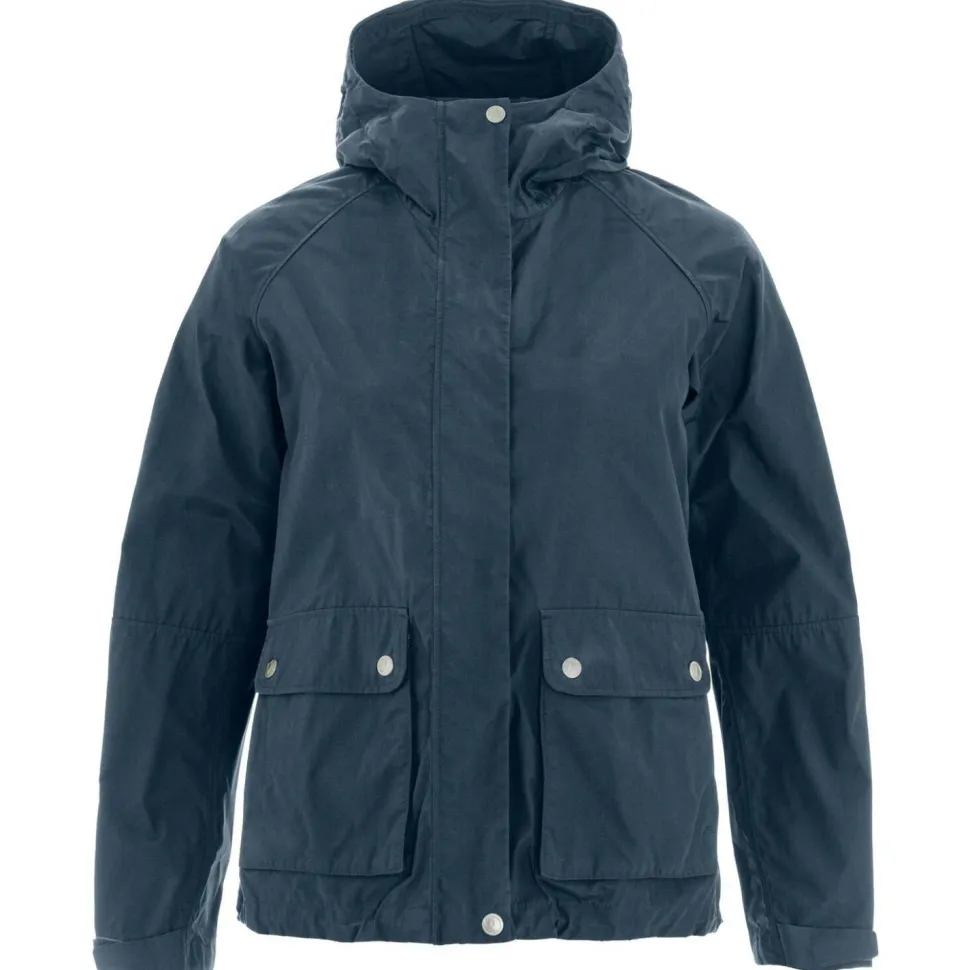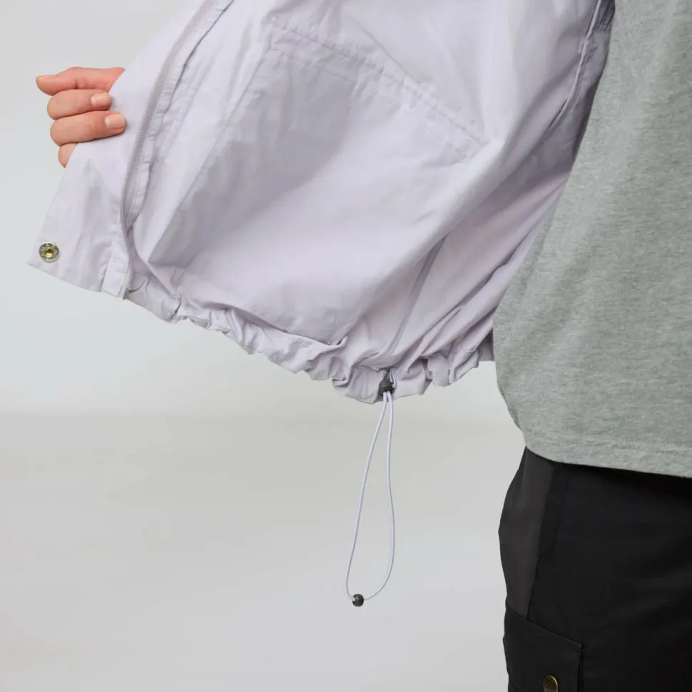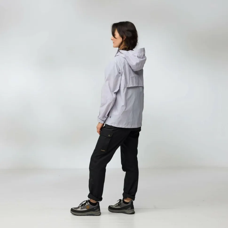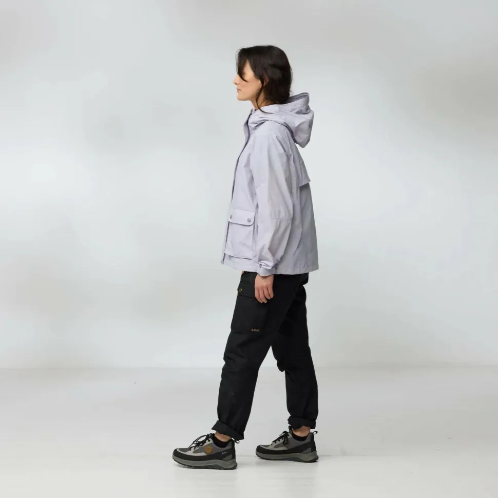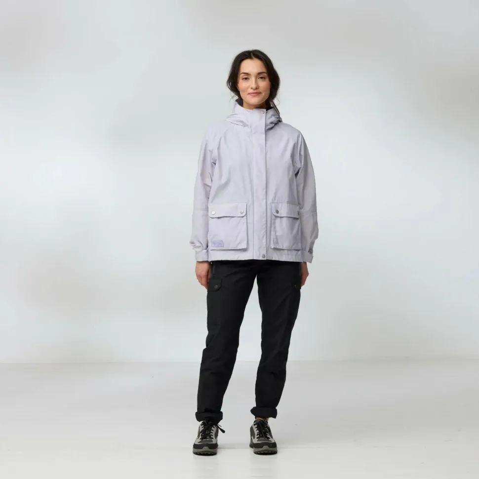 Die Women’s Vardag Vindby Jacket von Fjällräven ist locker geschnitten und sorgt für angenehme Beweglichkeit. Der durchgehende Frontreißverschluss wird zusätzlich durch eine breite Abdeckleiste geschützt und die Kombination aus hohem Kragen und Kapuze sorgen für den nötigen Wetterschutz bei Regen und Wind.