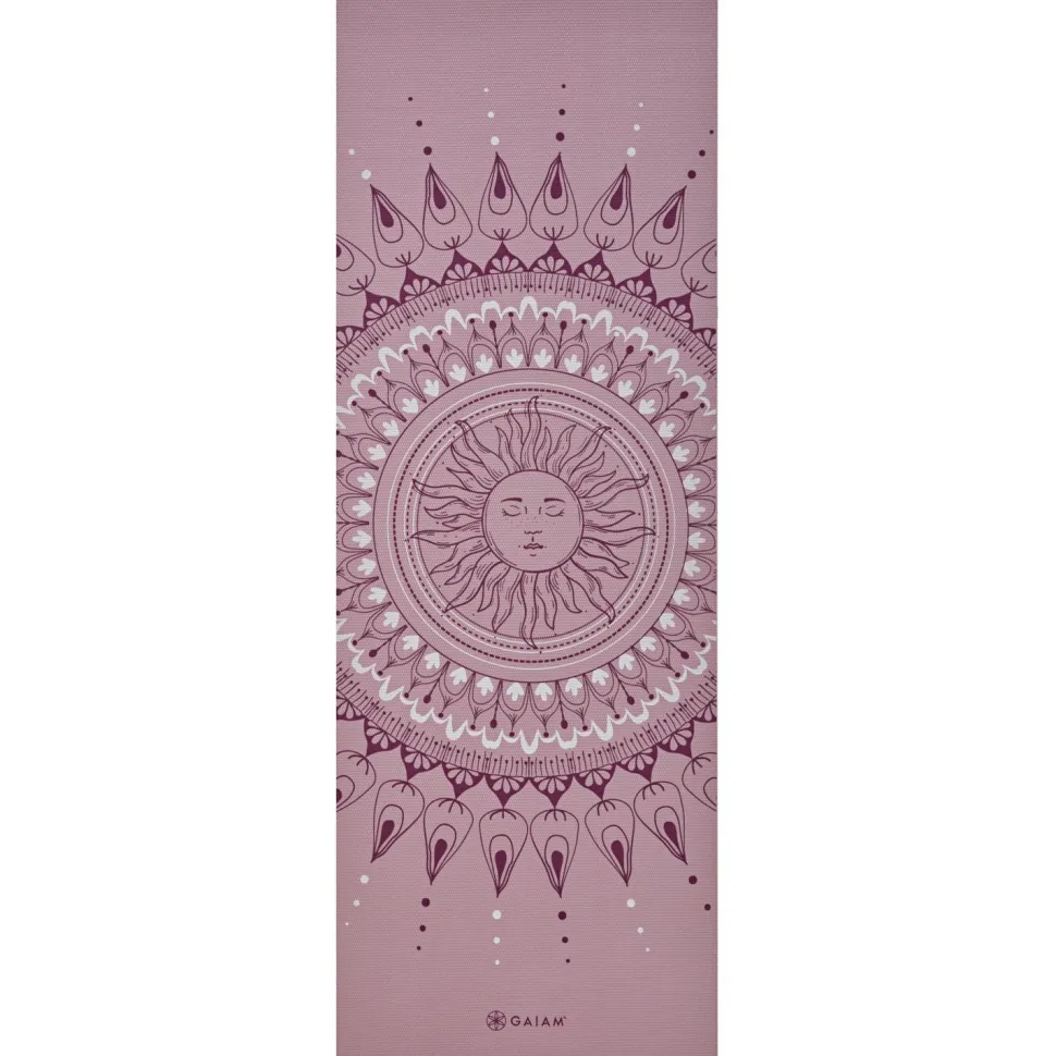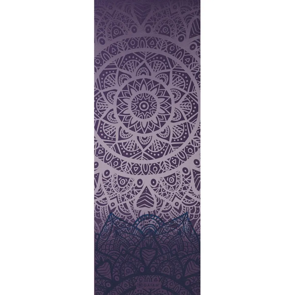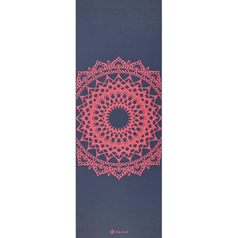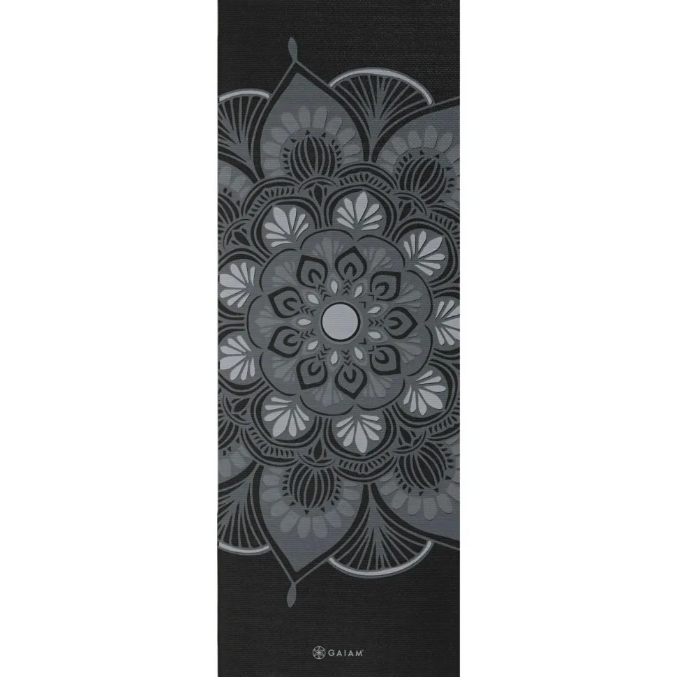 Die 4 mm Classic Printed Yoga Mat von GAIAM fällt durch das Mandala sofort ins Auge. Dies lädt zum Verweilen auf der Matte ein und dient zudem als Fokuspunkt während der Ausübung von Yoga. Der Yoga Print am Fußende der Matte ist ein zusätzlicher Blickfang.