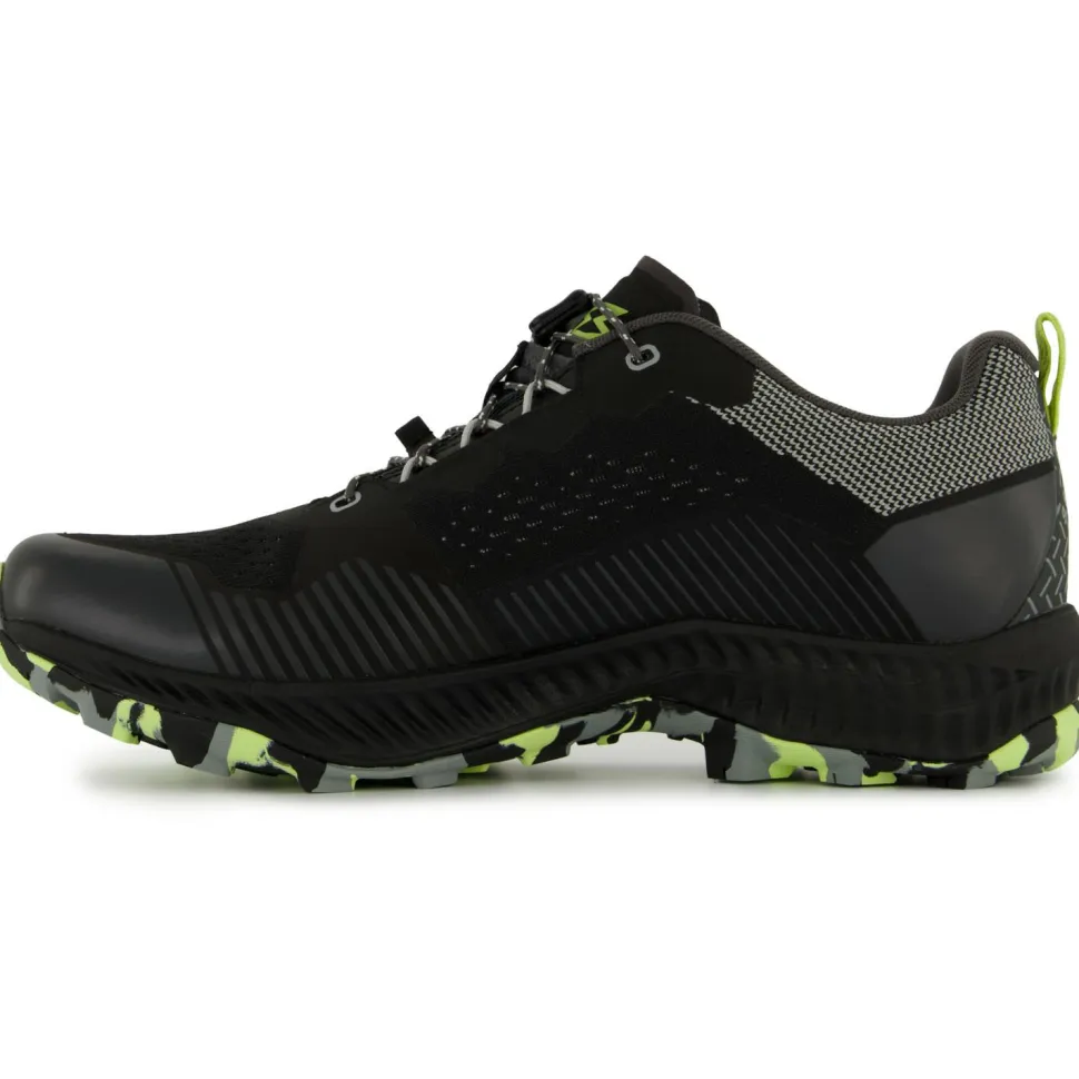 Das Obermaterial aus einem stabilen recycelten Garn verstärken Schweißstellen an den Seiten, im Fersenbereich und als Zehenkappe. Diese sorgen für einen soliden Schutz vor Nässe und Geröll. Belüftungslöcher erzeugen eine gute Luftzirkulation. Dadurch gelangen Dämpfe, die auf der Haut entstehen, aus dem Innern nach außen. Auf diese Weise überhitzen Deine Füße nicht, auch wenn’s mal anstrengender wird. Dank des Schnellschnürsystem mit Kordelzug ziehst Du die Schuhe schnell an und aus.