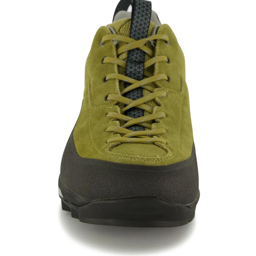 Der feste Schnitt sorgt für einen guten Halt des Schuhs, lässt dem Vorderfuß allerdings angenehm viel Platz. Zum Schutz der Fußgelenke fängt die EVA Mittelsohle mit ihrer dämpfenden Eigenschaft Stöße ab. Die GARMONT Außensohle schenkt mit ihrem griffigen Profil ausreichend Halt im Gelände. Zudem ist sie mit einer Kletterzone an der Fußspitze ausgestattet, so können mit dem Dragontail von Garmont Kletterstellen problemlos gemeistert werden.