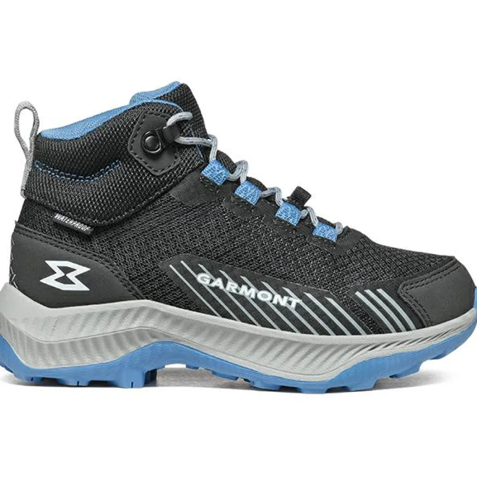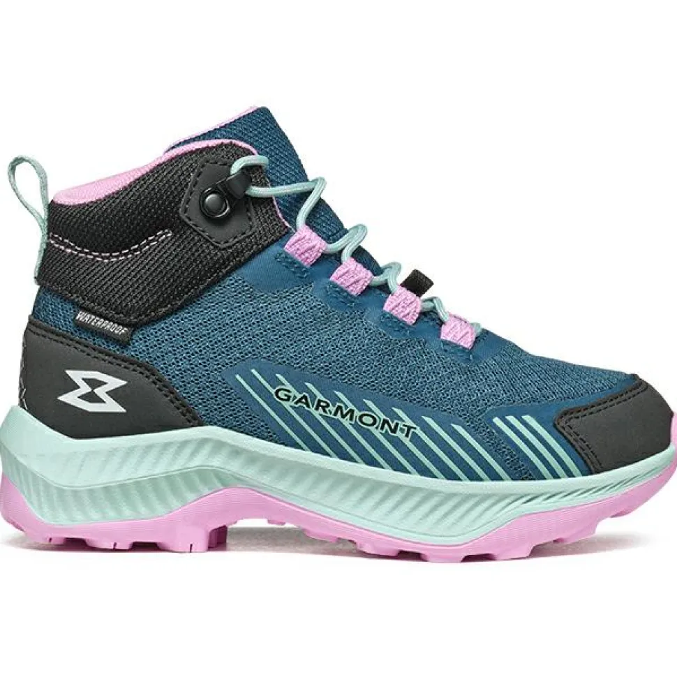 Mit den Kid’s 9.81 Pulse Mid WP von Garmont sind kleine Wanderer perfekt für jedes Abenteuer gerüstet! Die hohen Wanderschuhe verwenden ein luftiges Obermaterial aus Polyester-Mesh, das über eine hohe Atmungsaktivität verfügt und dank robusten Mikrofaser-Verstärkungen auch die nötige Strapazierfähigkeit besitzt. Die hauseigene G-Dry Membran von Garmont macht die Schuhe absolut wasserdicht und garantiert somit trockene Füße bei jedem Wetter. Das bequeme Fußbett aus PU-Schaum verleiht den Schuhen eine optimale Dämpfung und sorgt für einen langanhaltenden Laufkomfort, während die rutschfeste GTF Kids Magnet Gummisohle auch in anspruchsvollem Gelände einen tollen Grip bietet. Das unkomplizierte Schnellschnürsystem ermöglicht es den Kids außerdem, die Schuhe im Handumdrehen selbständig zu binden.