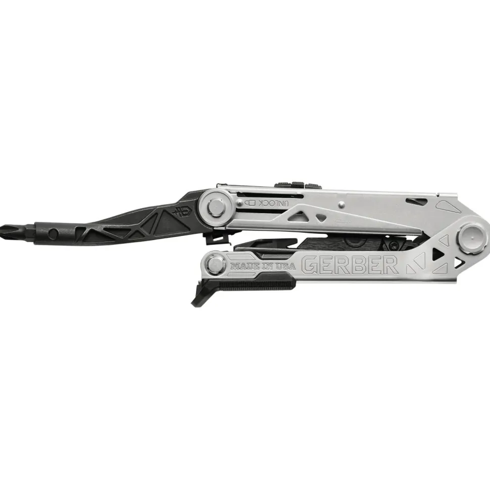 Das Multitool Center Drive von Gerber überrascht mit einer Neuheit, dieToolfreunde begeistern wird: Dank eines Vollformat-Schraubendrehers mit zentrierter Achse bietet das Center Drive eine Ergonomie und ein Drehmoment, wie man es bei Tools bisher vergeblich gesucht hat. Da es außerdem Standard-Bits verwendet, wird beim Center Drive der Schraubendreher ein vollwertiges Werkzeug. Weitere Highlight-Funktionen sind die mit einer Hand ausfahrbare Zange mit Carbid-Cuttern sowie dieungewöhnlich lange Messerklinge. Wellenschliff, einen Nagelentferner, eine Feile, eine Kratzklinge, einen Flaschenöffner, eine Feile und eine Wechselbit-Halterung runden das Konzept ab.
