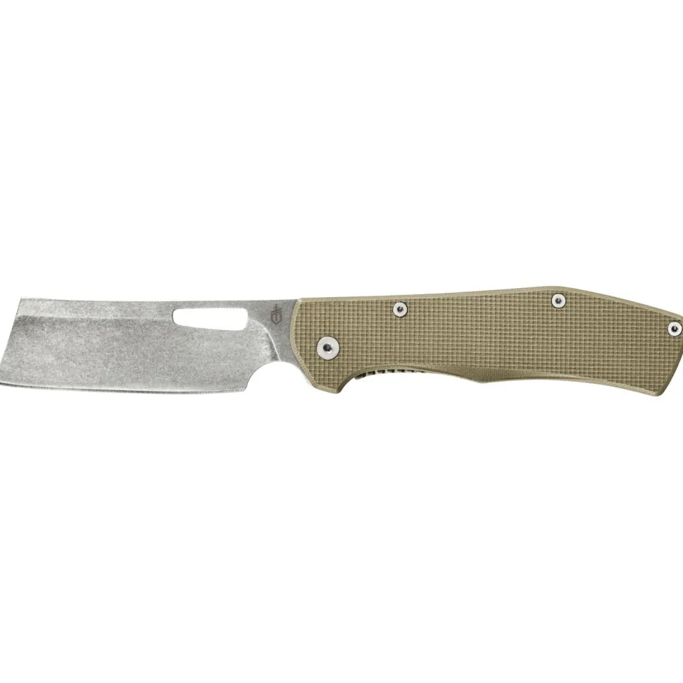 Ein auffälliges Design besitzt das Messer Faltiron G10 von Gerber. Die mit einer ungewöhnlichen sehr geraden Form ausgestattete Klinge aus rostfreiem Stahl lässt sich über den großen Klingendurchbruch mit einer Hand öffnen und arretiert per Frame Lock.