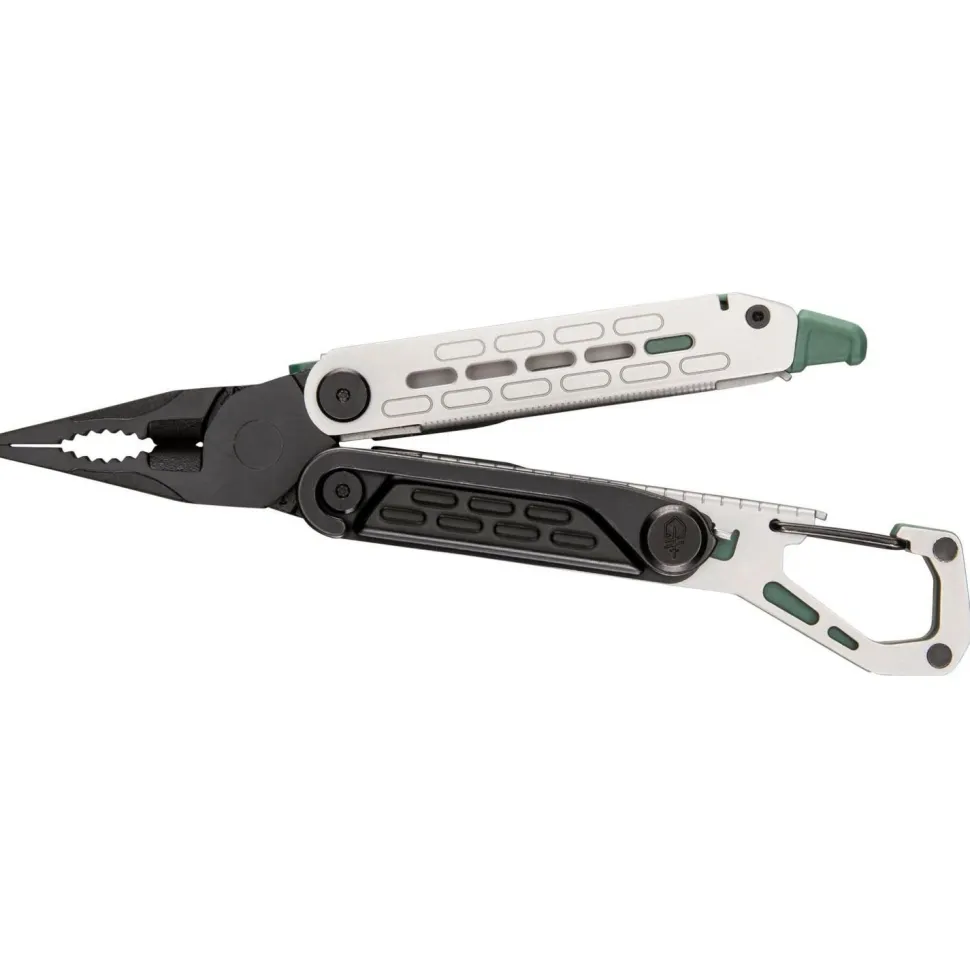 Das Stakeout Spark Multitool von Gerber bietet Dir einige wichtige Funktionen in einem kompakten Werkzeug: Zange, Drahtschneider und Ahle helfen Dir bei Reparaturen, während Klinge und Säge Aufgaben in der Campküche oder beim Aufbau übernehmen. Der integrierte Feuerstahl mit passender Schlagkante ermöglicht Dir das Anzünden eines Feuers ganz ohne Streichhölzer und Feuerzeug. Ein Zeltheringszieher, Lineal und Flaschenöffner runden das Set sinnvoll ab. Dank Butterfly‑Öffnung hast Du die Werkzeuge schnell bei der Hand, und mit Clip oder Karabiner trägst Du das Tool bequem an Deiner Kleidung oder Ausrüstung.