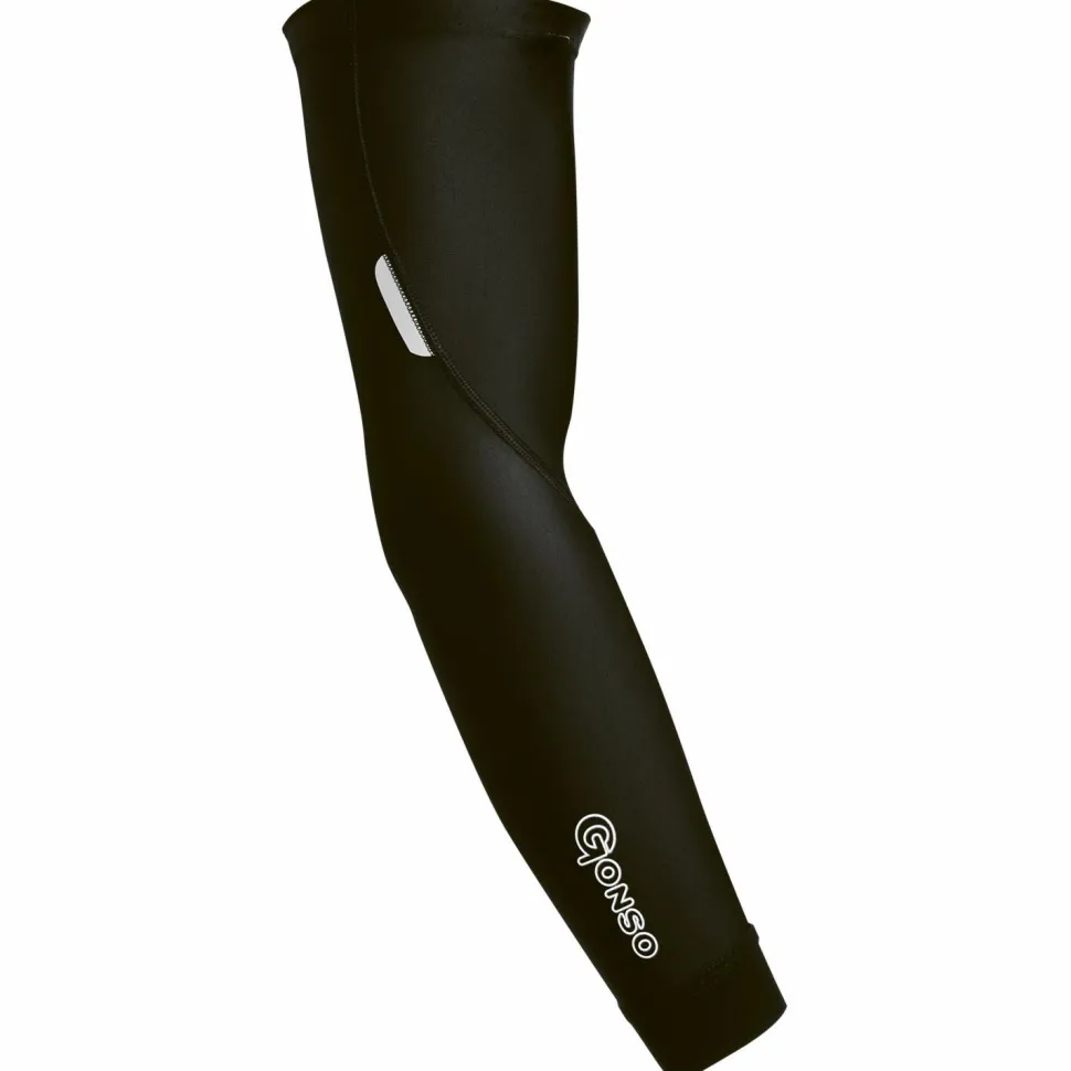 Die Armlinge von Gonso kommen dann zum Einsatz, wenn die Temperaturen unangenehm niedrig werden und kein Platz für eine sperrige Jacke im Gepäck ist. Ein kurzärmliges Radtrikot wird von den Armlingen in Sekunden verlängert. Die elastischen Eigenschaften schmiegen sich in Kombination mit den beweglichen Materialien angenehm an die Haut an. Für bessere Sichtbarkeit sind reflektierende Elemente angebracht.