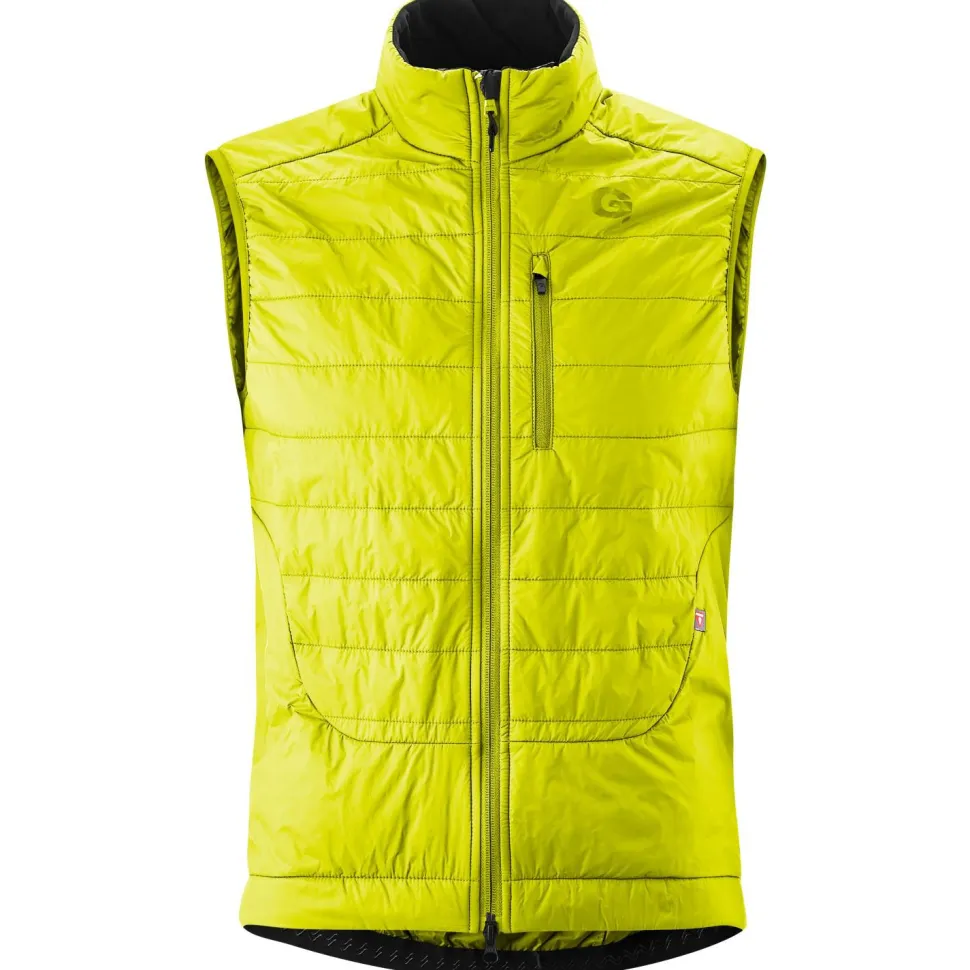 Die Taccone von Gonso ist Dein zuverlässiger Warmhalter für kühle Tage auf dem Rad! Die Fahrradweste ist aus einem geschmeidigen Polyamidgewebe gefertigt, das zusammen mit der körpernahen Slim Fit Passform ein hohes Maß an Bewegungsfreiheit bietet. Die hochwertige Primaloft Silver Kunstfaserisolierung aus umweltfreundlichem Post-Consumer-Recyclingmaterial verleiht der Weste eine hervorragende Wärmeleistung, während der atmungsaktive Einsatz im Rückenbereich für ein optimales Feuchtigkeitsmanagement sorgt. An Brust und Rücken befinden sich zudem praktische Reißverschlusstaschen, die leicht zugänglichen Stauraum für Gels und anderen Kleinkram bieten.