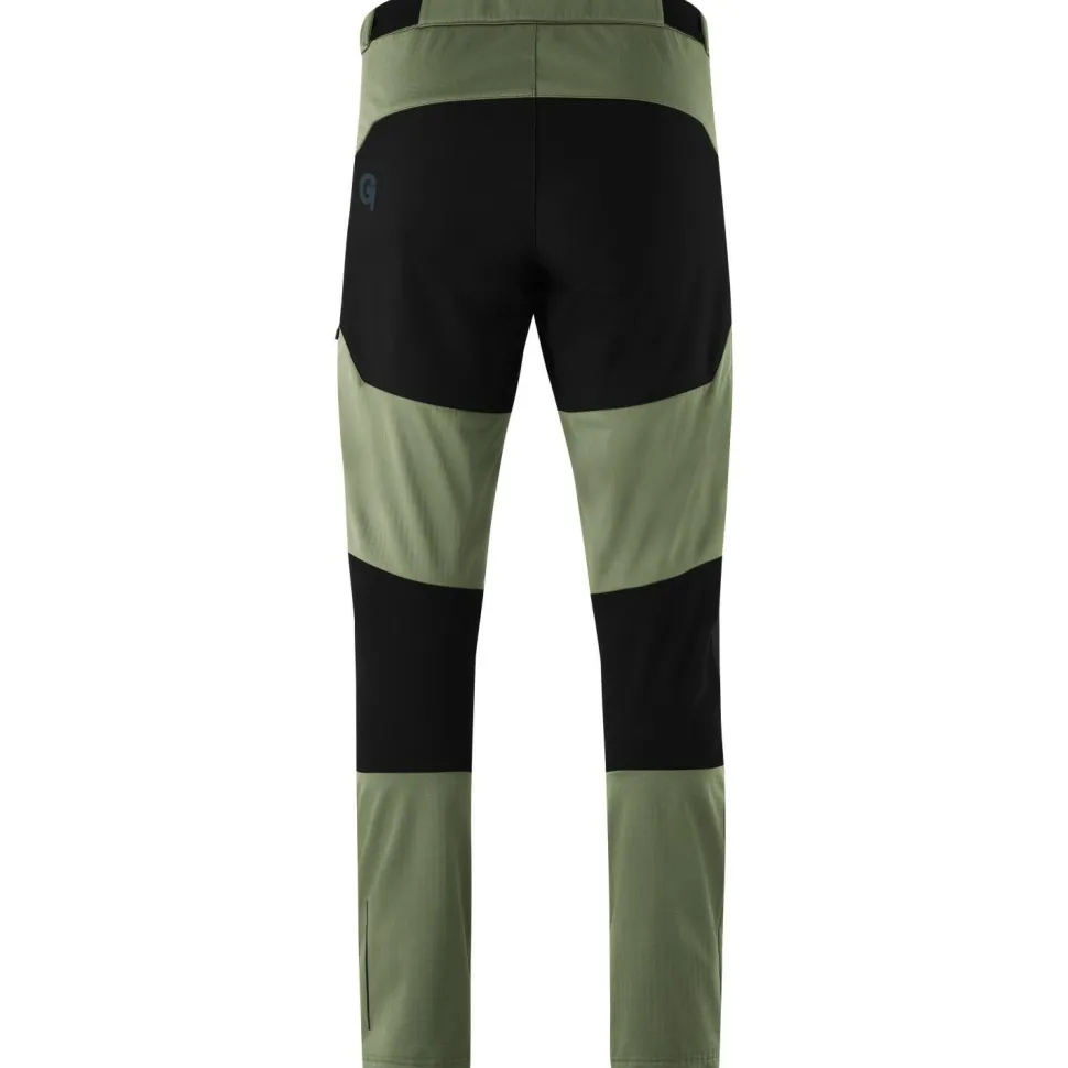 Wie gemacht für kühle Tage auf dem Mountainbike: die Trail Pants Softshell von Gonso! Die lange MTB-Radhose verwendet das strapazierfähige G-Shell Structure Softshellgewebe von Gonso, das zuverlässigen Schutz vor kaltem Wind bietet und dank PFC-freier DWR-Imprägnierung über wasserabweisende Eigenschaften verfügt. Der weitenregulierbare Bund und die vorgeformten Knie mit elastischen Einsätzen verleihen der Hose einen angenehmen Tragekomfort, während die beiden Fronttaschen mit Reißverschluss sicheren Stauraum für wichtige Kleinigkeiten bieten. Perfekt abgerundet wird die Radhose durch den zusätzlichen Abriebschutz im Gesäßbereich und die praktischen Belüftungsreißverschlüsse am Oberschenkel, die für eine optimale Ventilation sorgen.