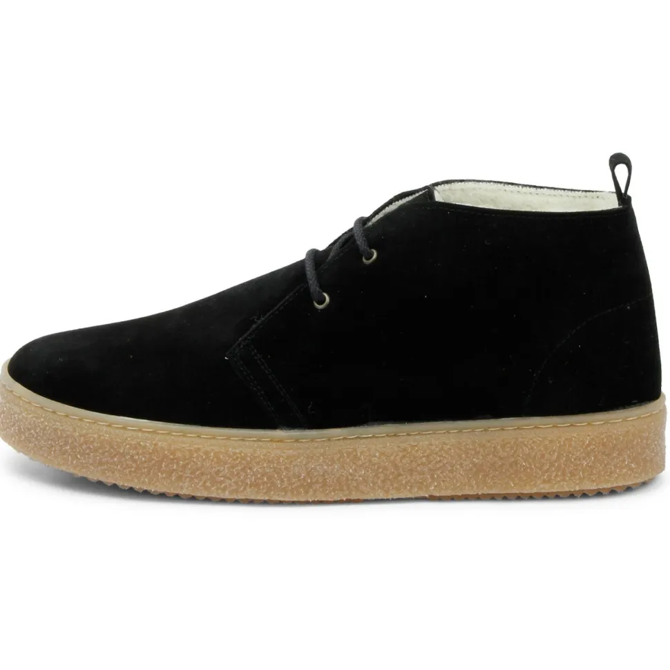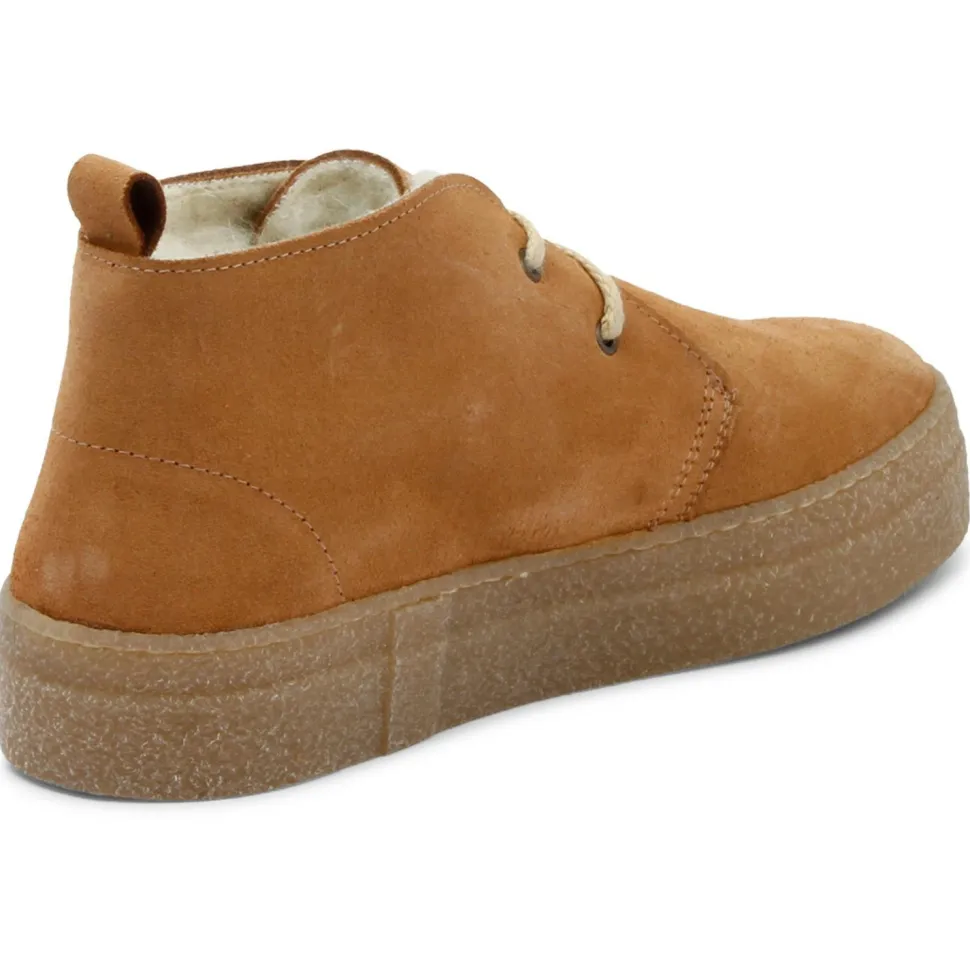Die knöchelhohen Schuhe sind im Inneren mit Wolle verkleidet, welche mit ihrer wärmeregulierenden Wirkung die Füße warm hält ohne dass diese das Schwitzten beginnen. Zudem verhindert sie mit ihrer antibakteriellen Wirkung die Bildung unangenehmer Gerüche. Das pflanzlich gegerbte Leder wurde besonders schonend für Mensch und Umwelt hergestellt und hält Nässe von den Füßen fern. Eine Anziehschlaufe an der Rückseite erleichtert das An- und Ausziehen. Die Gummisohle sorgt für den nötigen Grip im Schneematsch.